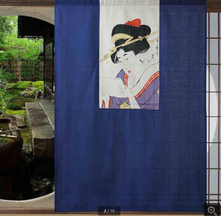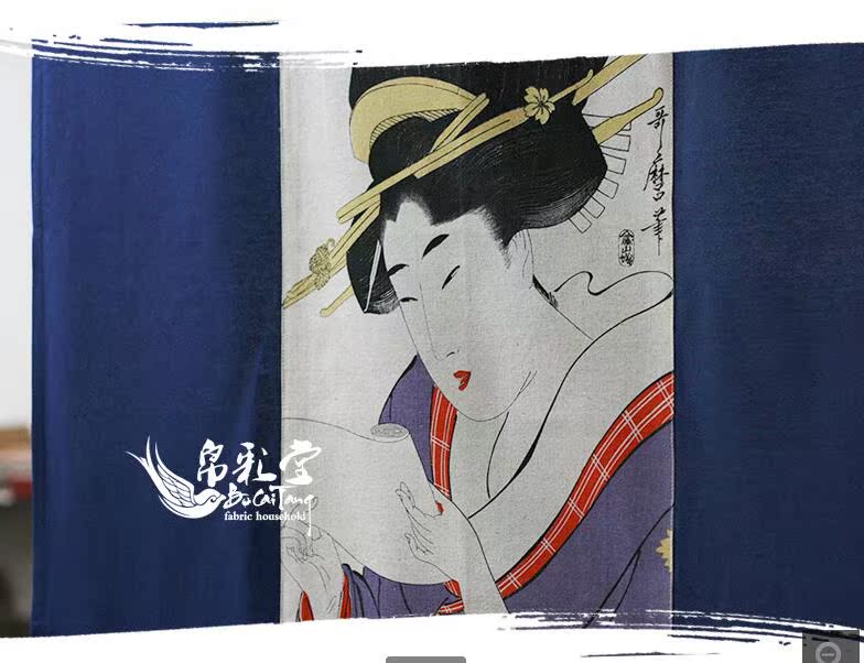 帛彩堂 90*125cm 浮世繪布藝門簾臥室隔斷簾風水簾 哥磨仕女圖 BML135