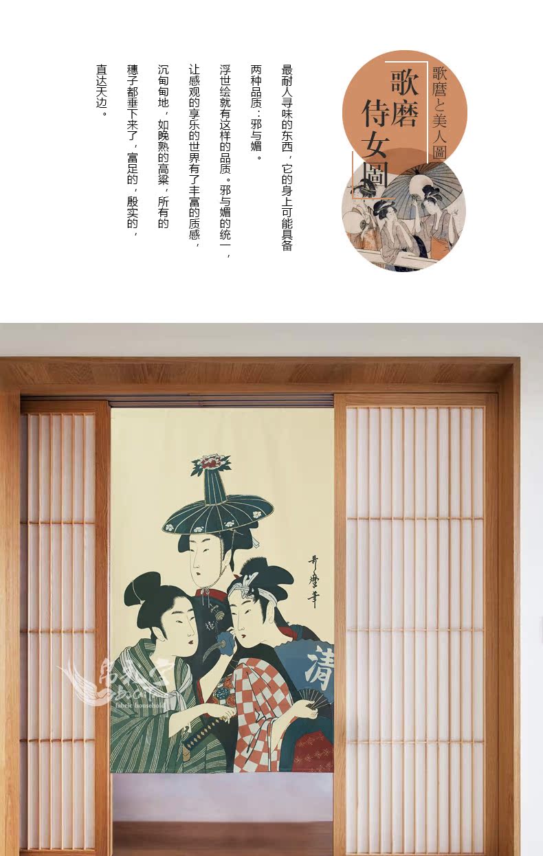 帛彩堂 90*140cm 布藝門簾隔斷簾掛簾半簾玄關簾 歌磨侍女 BML161