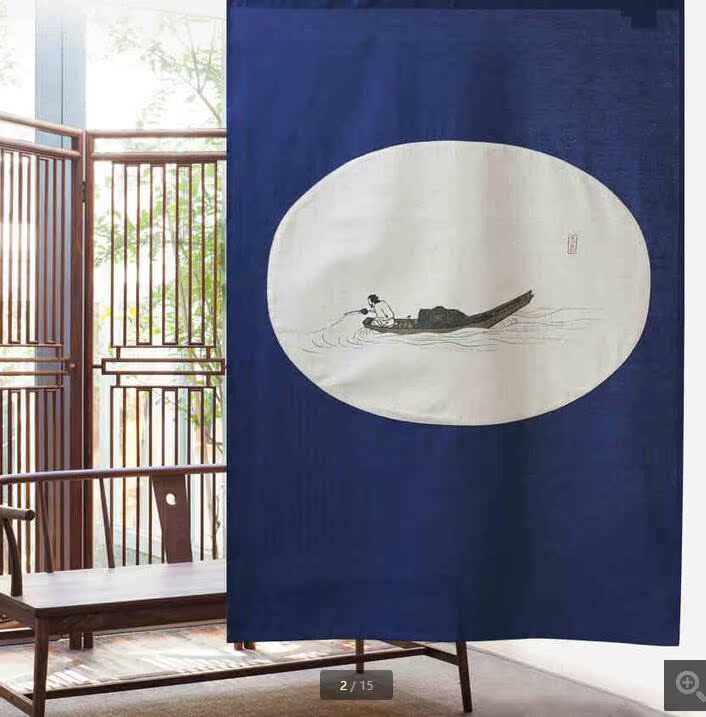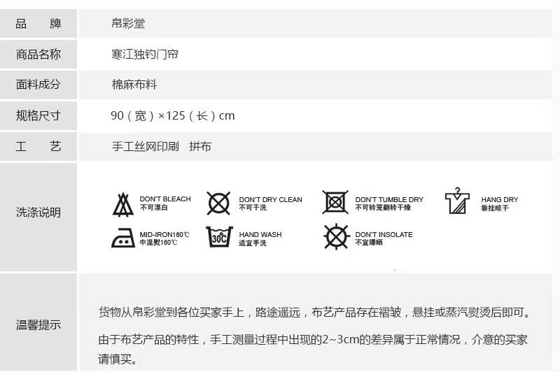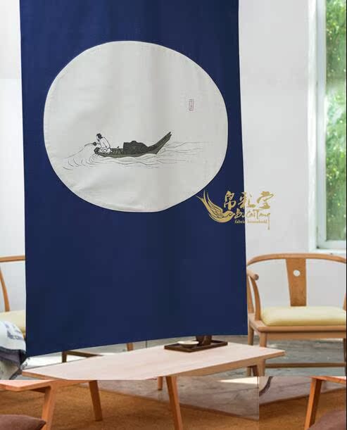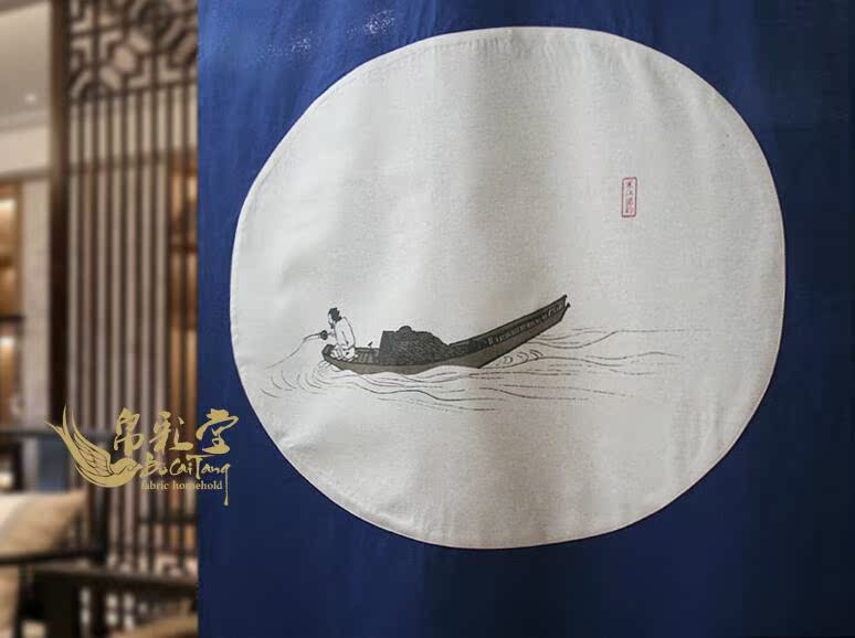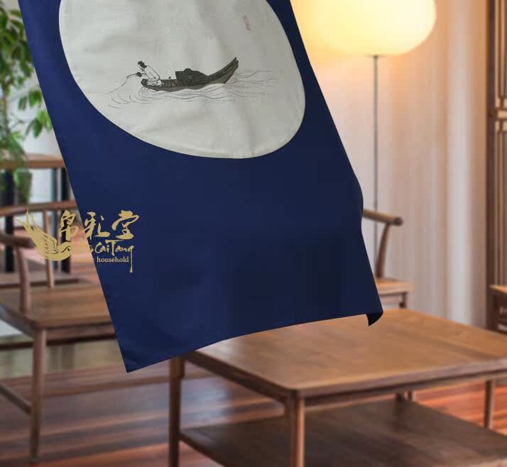 帛彩堂 90*125CM 臥室隔斷簾防風防蚊空調門簾 寒獨釣