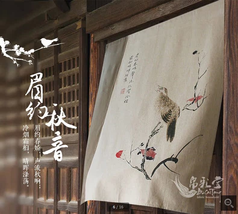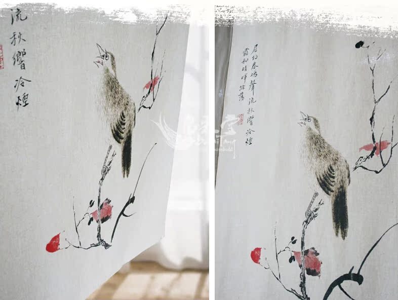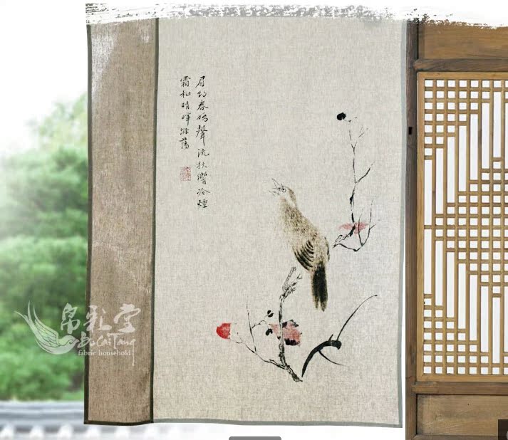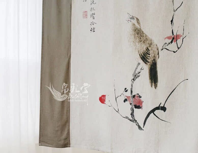 帛彩堂 90*120cm 意境花鳥門簾 布藝風水掛簾半簾 眉約秋音BML129