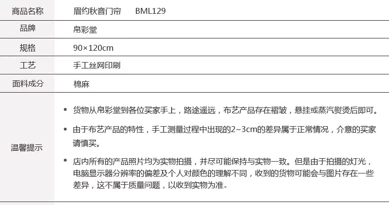 品名:眉約秋音門簾