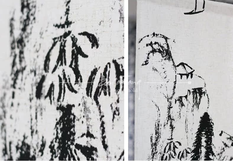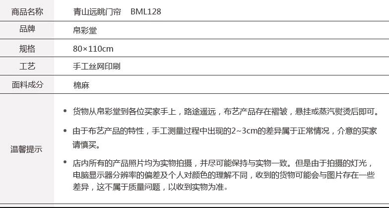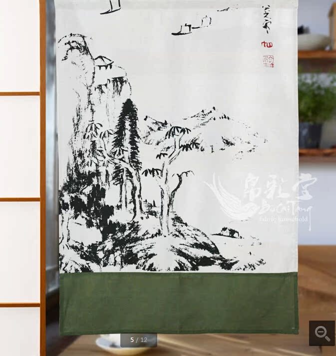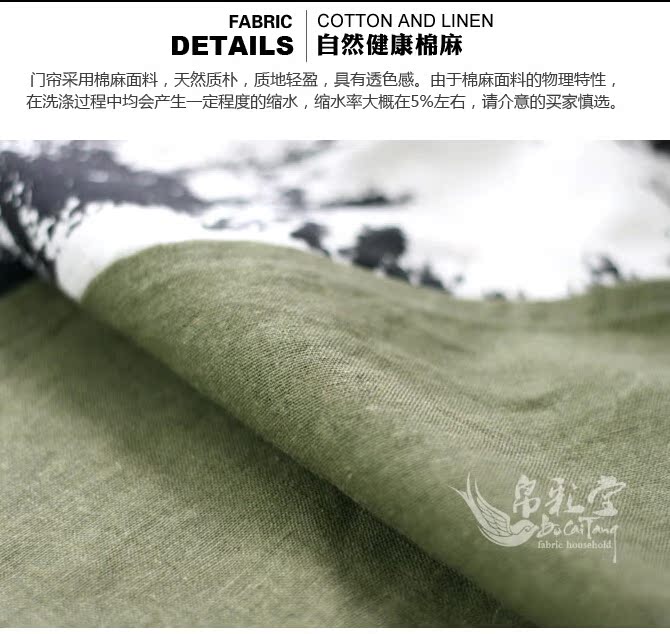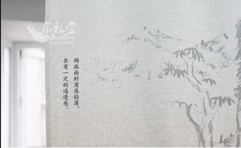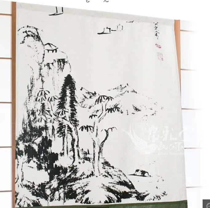 帛彩堂 80*110cm 家居風水棉麻門簾布藝隔斷掛簾 青山遠眺 BML128