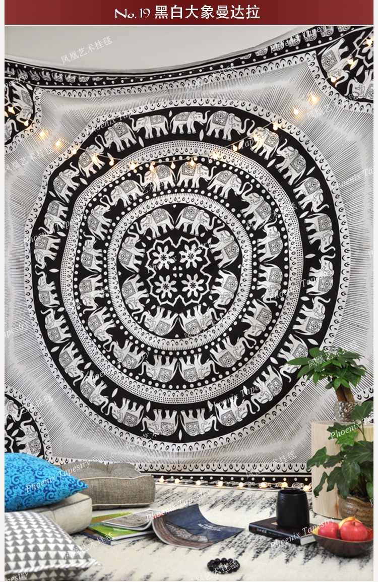 17 經典黑白壇城 大號 210*220cm鳳凰藝術掛毯印度手工印染曼達拉Mandala掛布-黑白系列