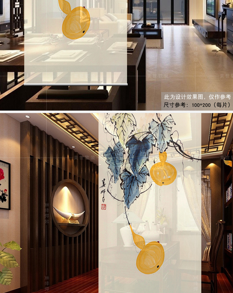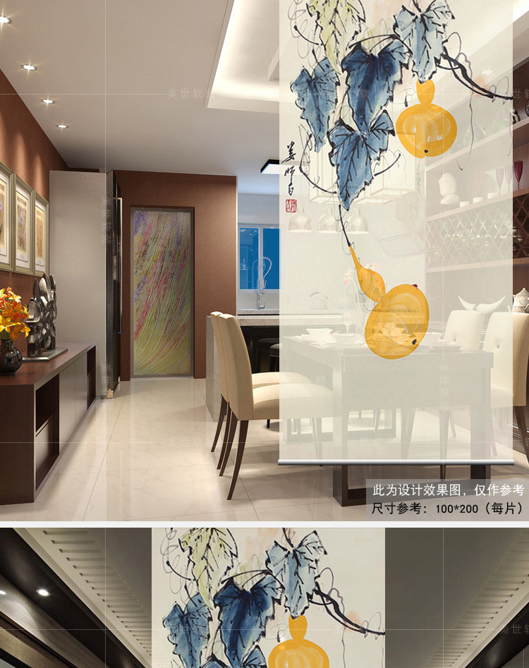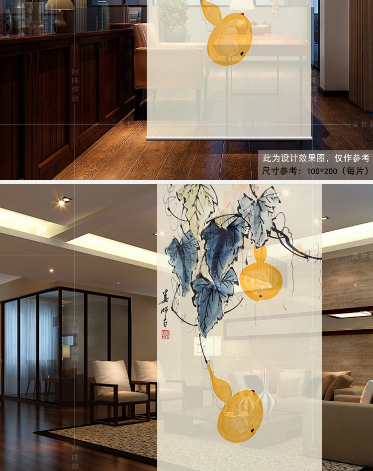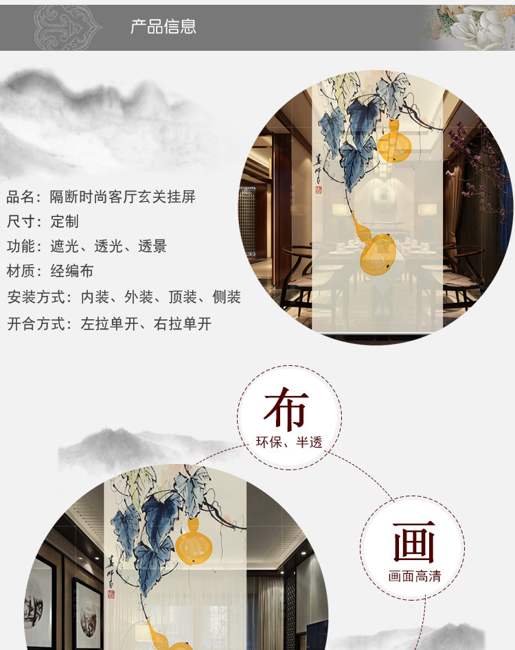其他尺寸、圖案定制中式掛式屏風隔斷玄關簾軟隔斷時尚客廳玄關掛屏卷簾【御賜葫蘆】