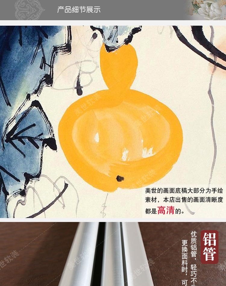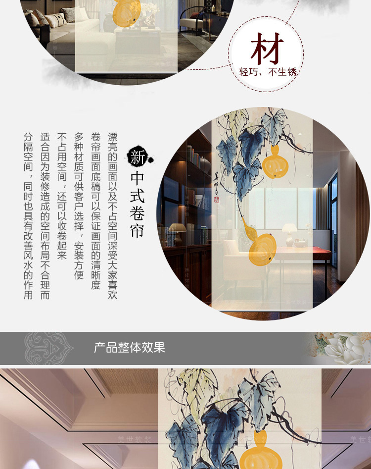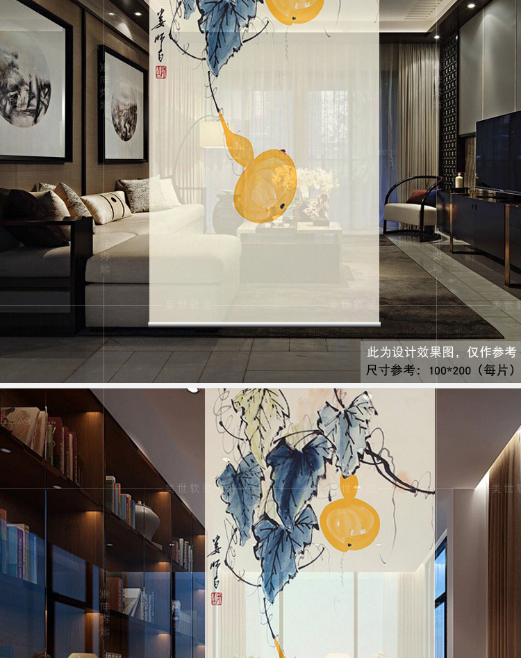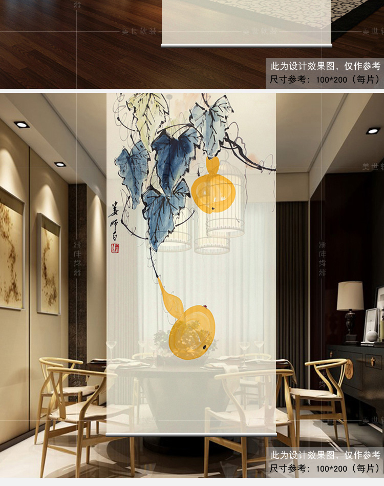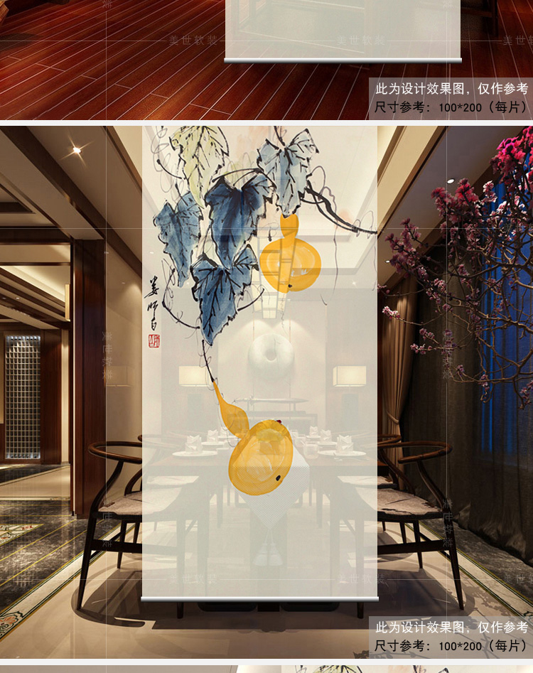 其他尺寸、圖案定制中式掛式屏風隔斷玄關簾軟隔斷時尚客廳玄關掛屏卷簾【御賜葫蘆】