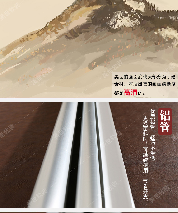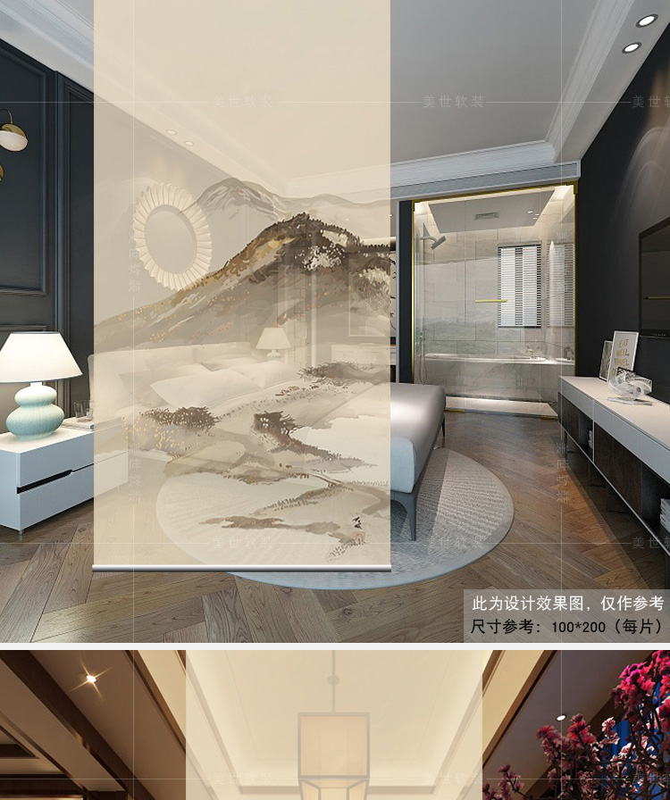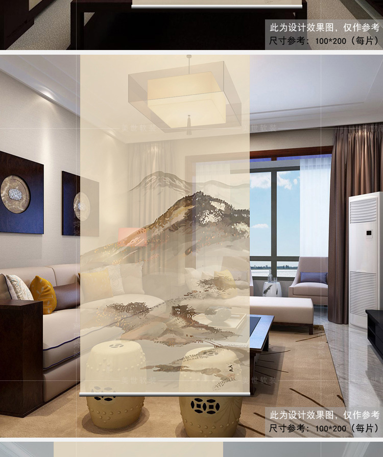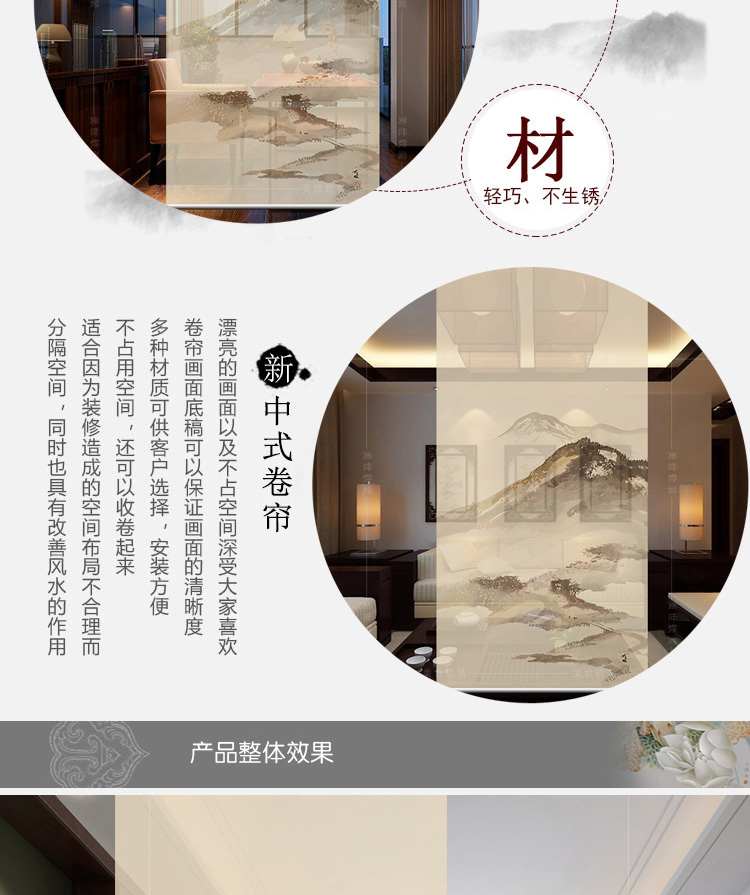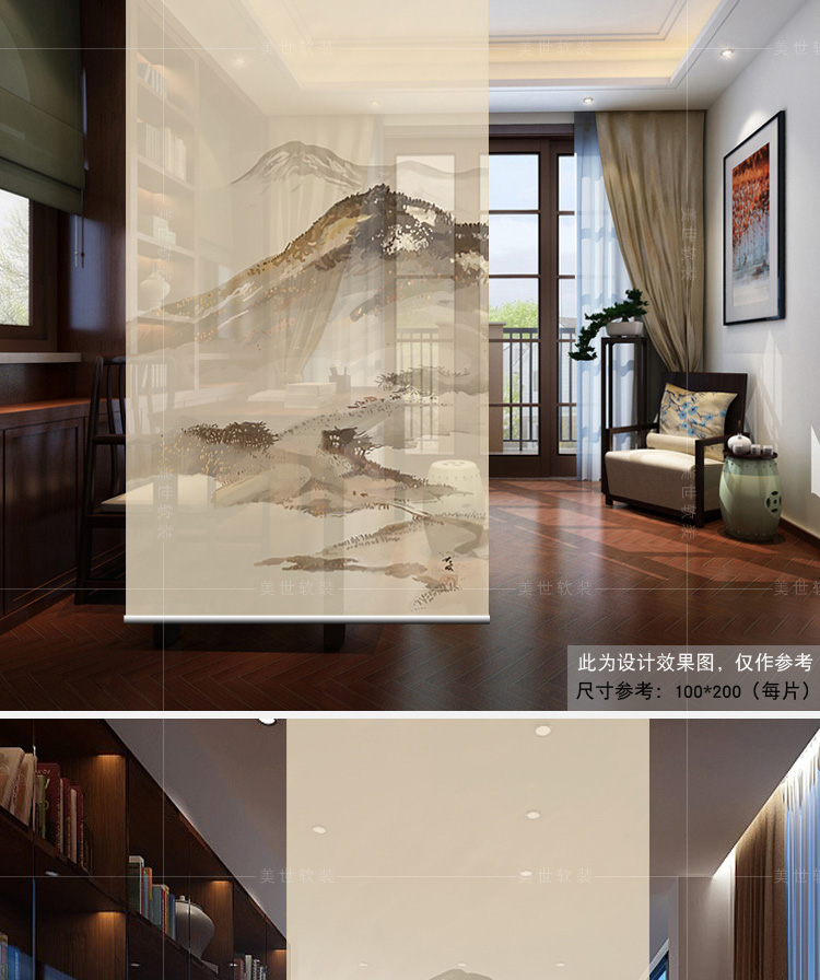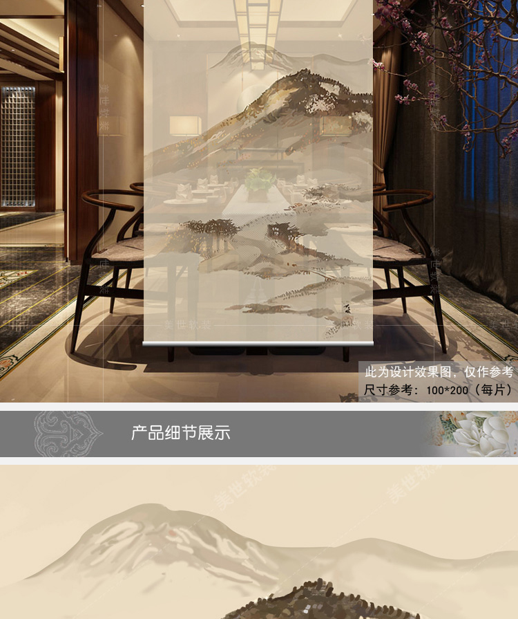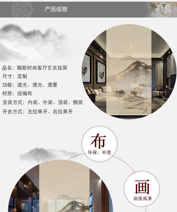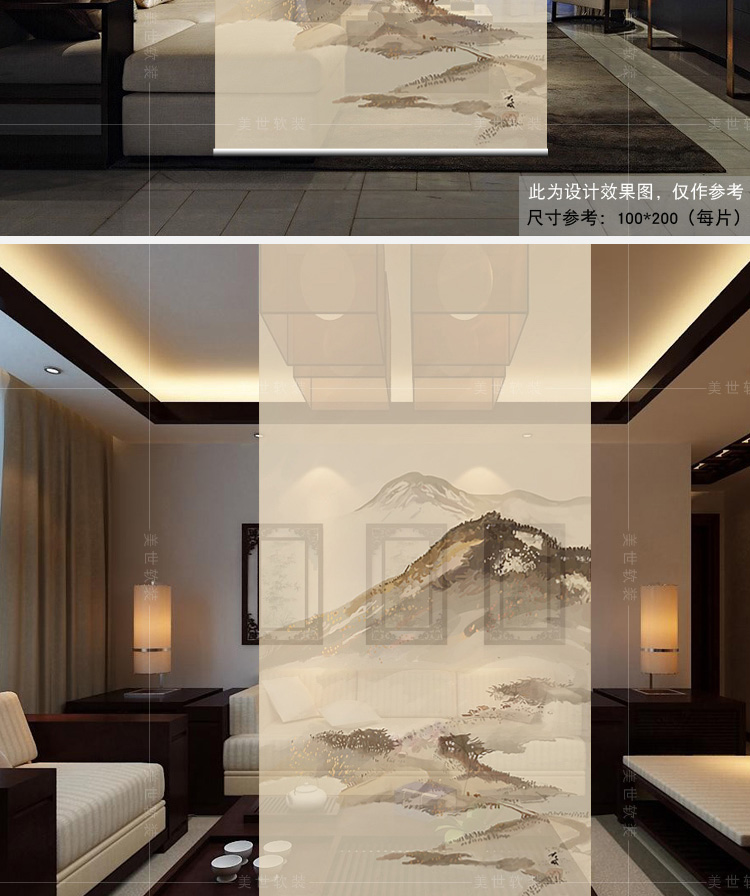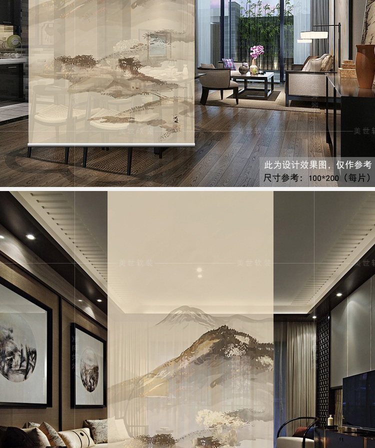 其他尺寸、圖案定制中式掛式屏風隔斷玄關簾軟隔斷時尚客廳玄關掛屏卷簾【山水2】