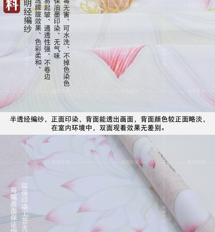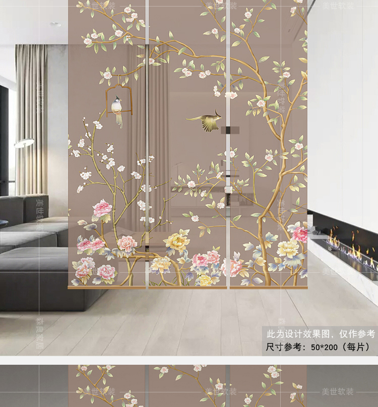 任意圖案和尺寸定制新中式掛式屏風隔斷玄關簾軟隔斷時尚客廳玄關掛屏卷簾 牡丹花鳥
