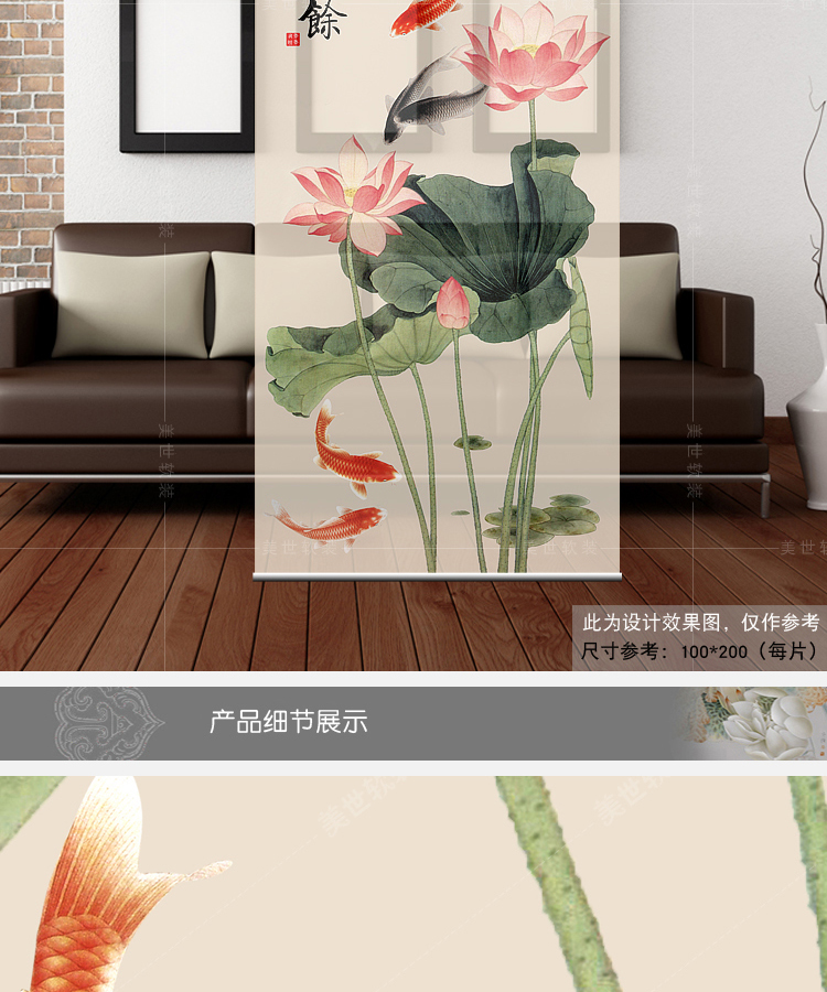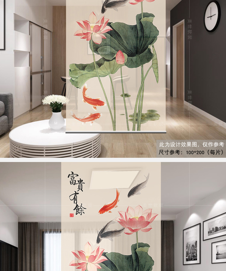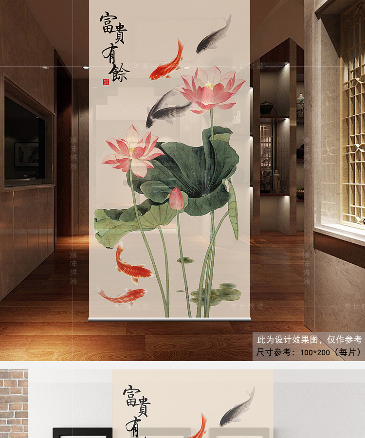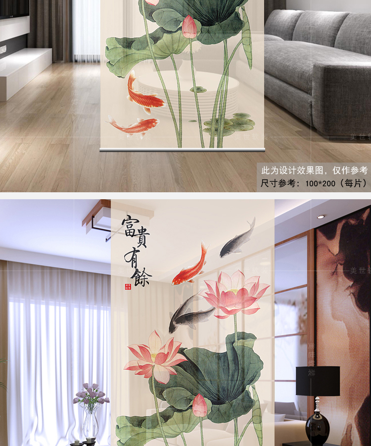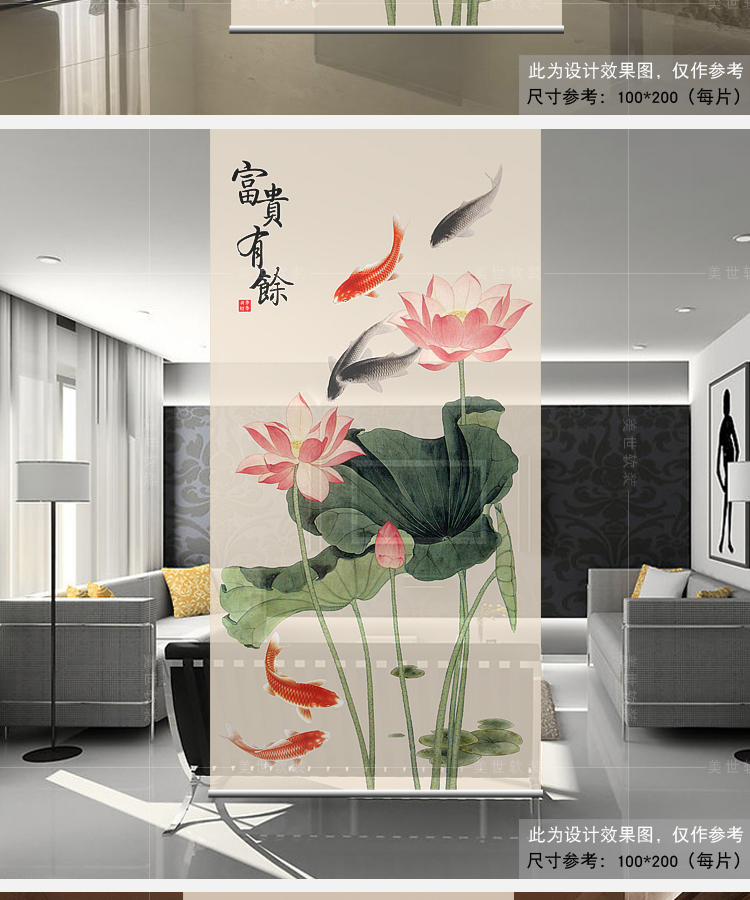 任意圖案和尺寸定制中式掛式屏風隔斷玄關簾軟隔斷時尚客廳玄關掛屏卷簾【富貴有余】