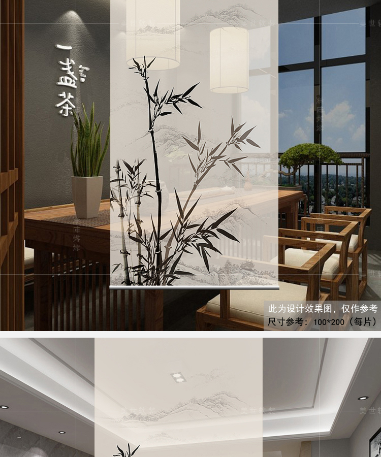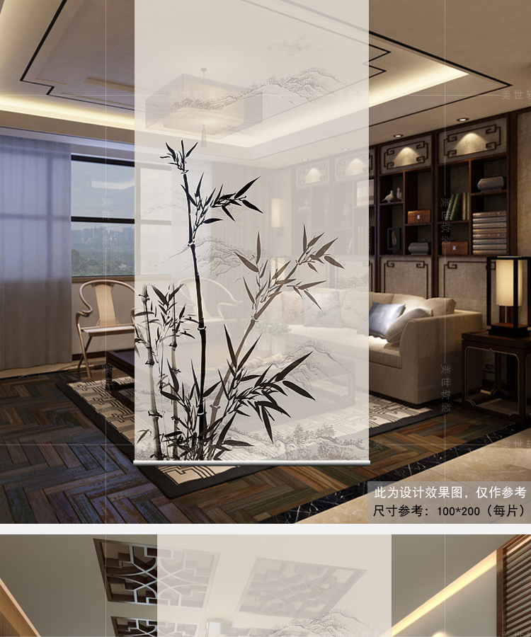 任意尺寸和圖案定制新中式掛式屏風隔斷玄關簾軟隔斷時尚客廳玄關掛屏卷簾【竹子1】