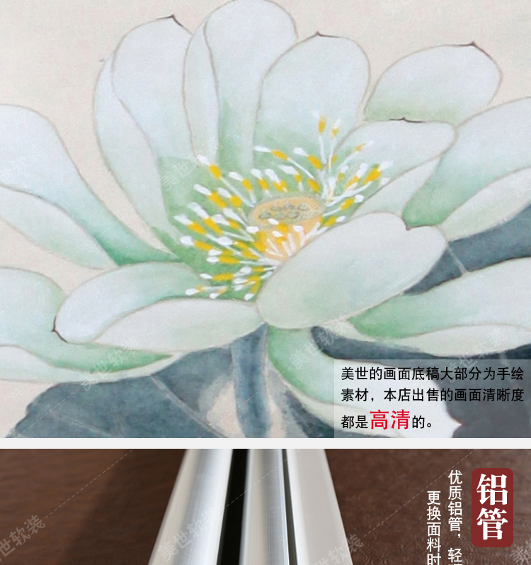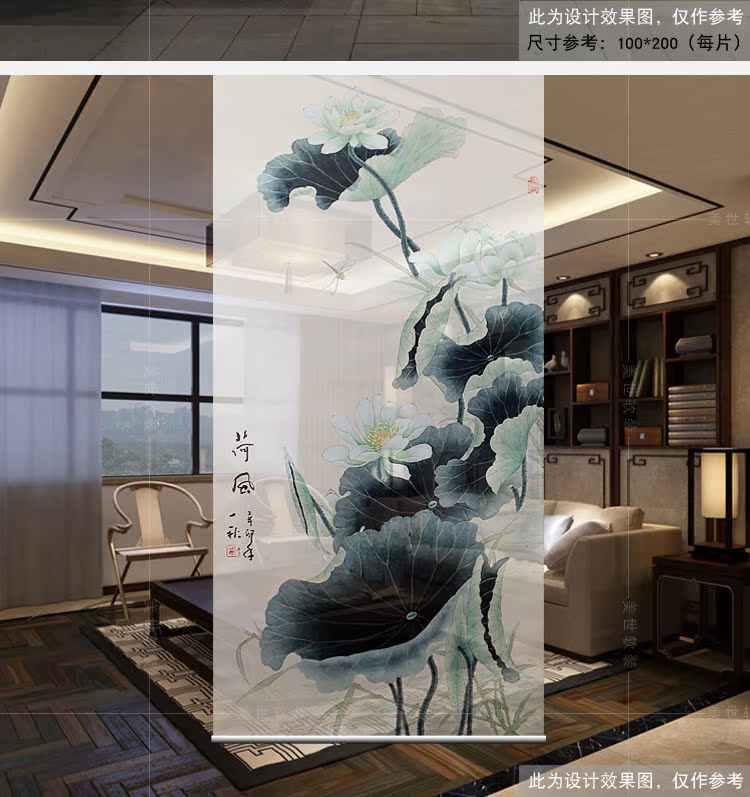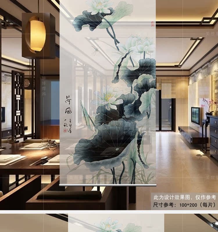 任意尺寸和圖案定制新中式掛式屏風隔斷玄關簾軟隔斷時尚客廳玄關掛屏卷簾【荷花9】