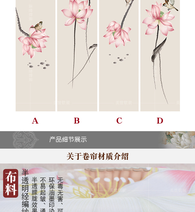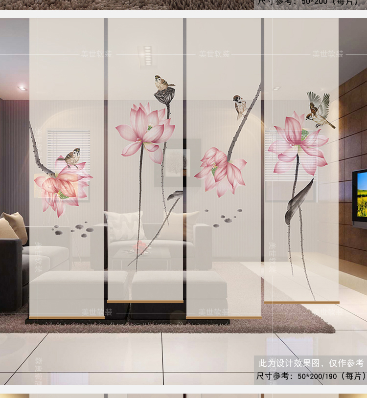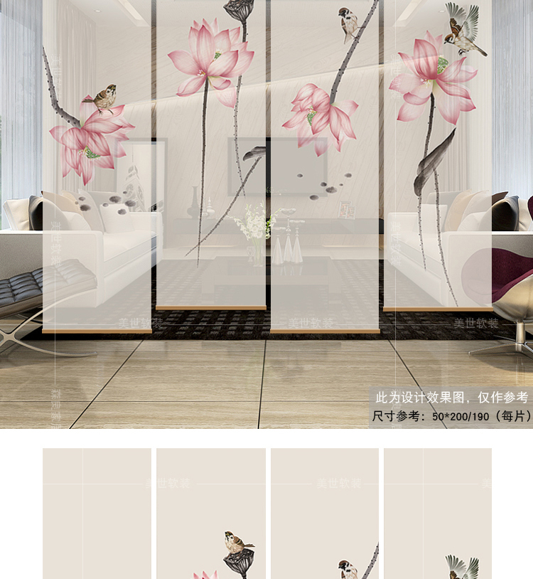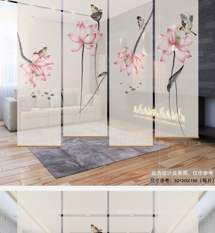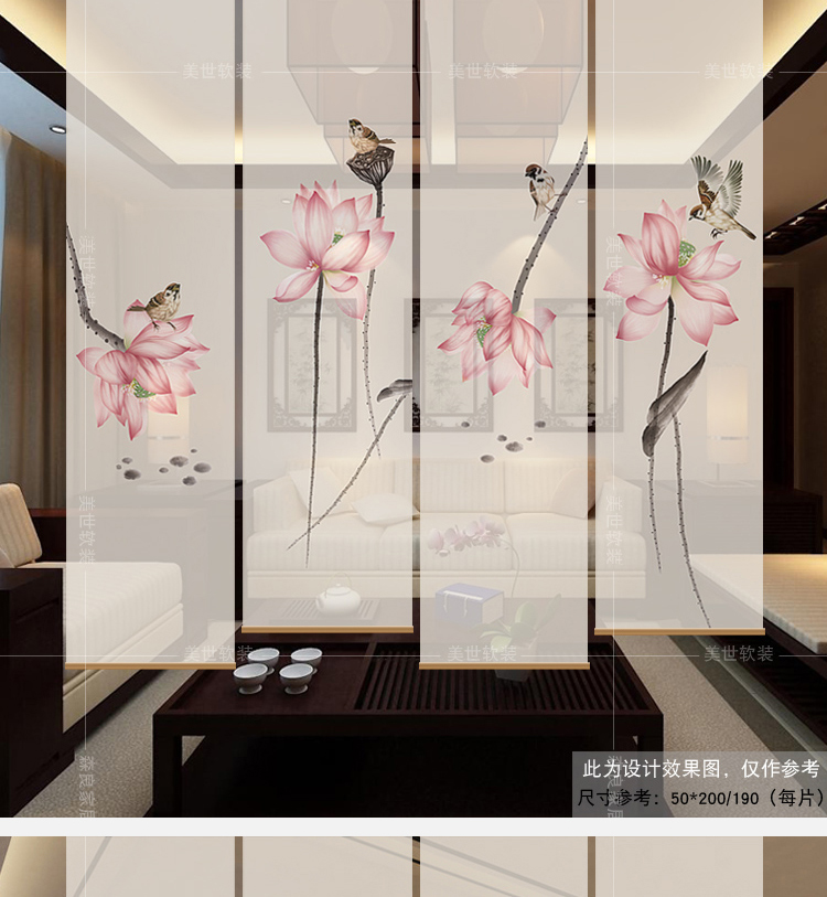 任意尺寸和圖案定制新中式掛式屏風隔斷玄關簾軟隔斷時尚客廳玄關掛屏卷簾 荷花小鳥