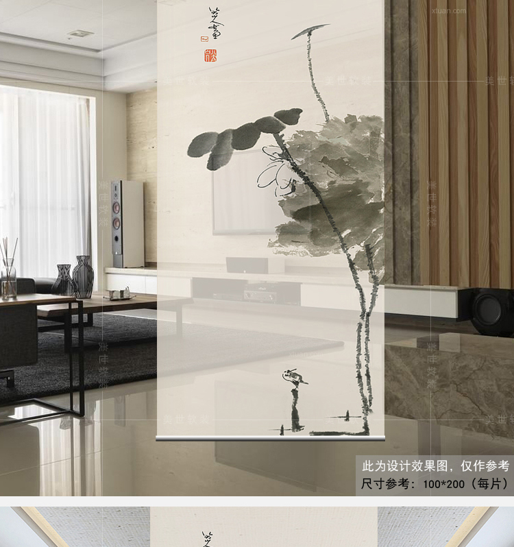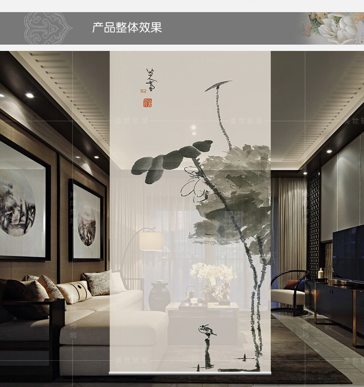 任意尺寸和圖案定制新中式掛式屏風隔斷玄關簾軟隔斷時尚客廳玄關掛屏卷簾 八大山人