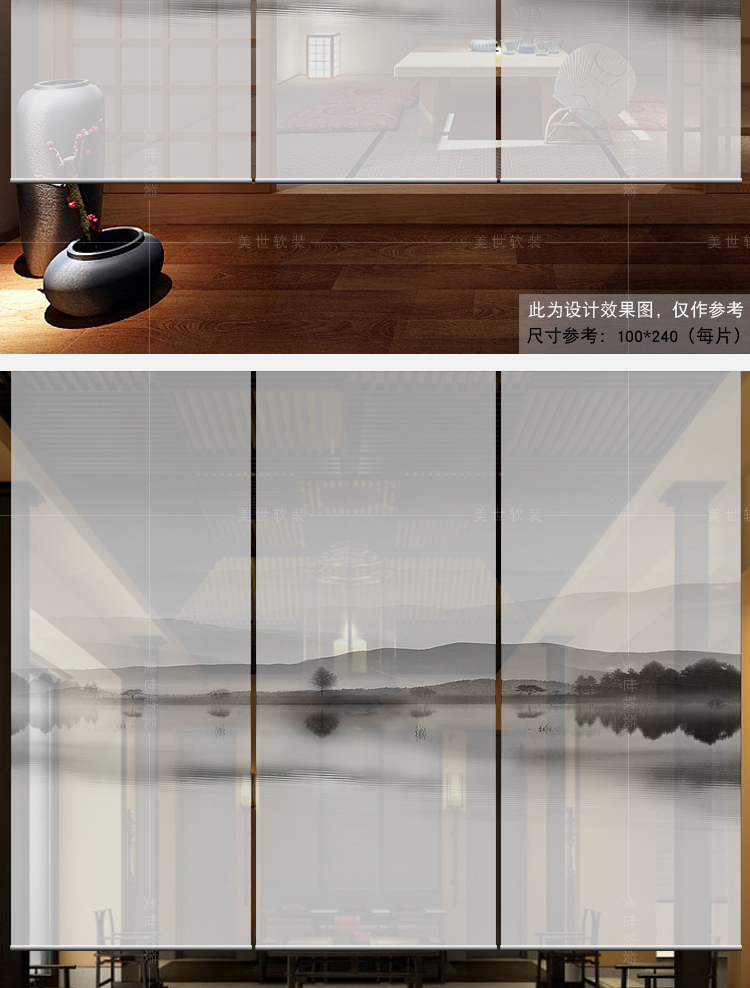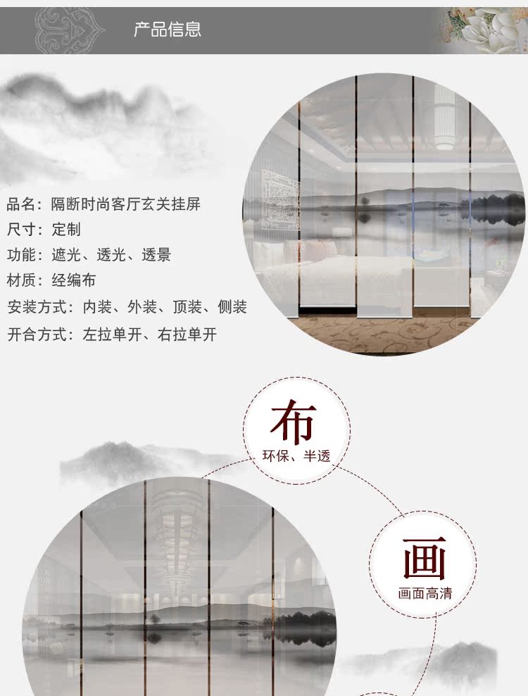 任意尺寸和圖案定制中式窗簾掛簾屏風隔斷玄關簾軟隔斷時尚客廳玄關掛屏卷簾山水