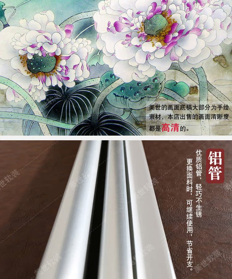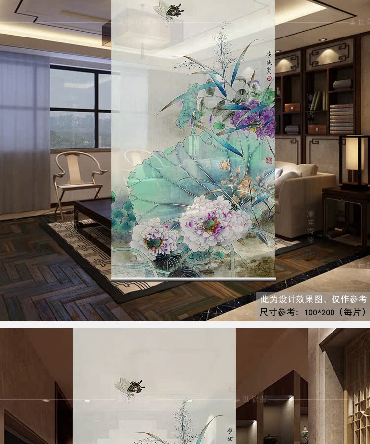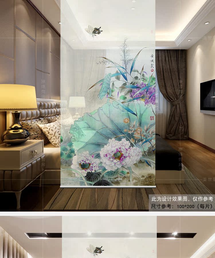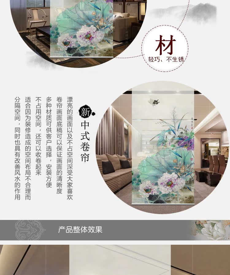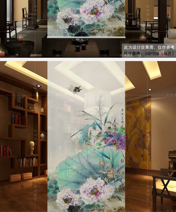 任意尺寸和圖案定制中式掛式屏風隔斷玄關簾軟隔斷時尚客廳玄關掛屏卷簾【荷花3】