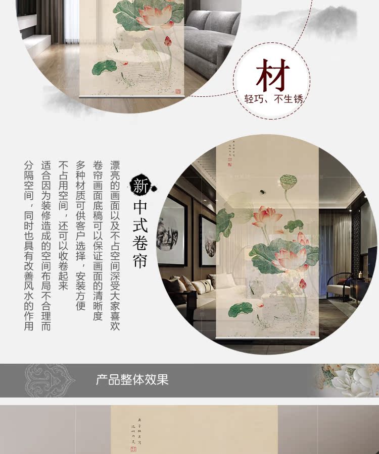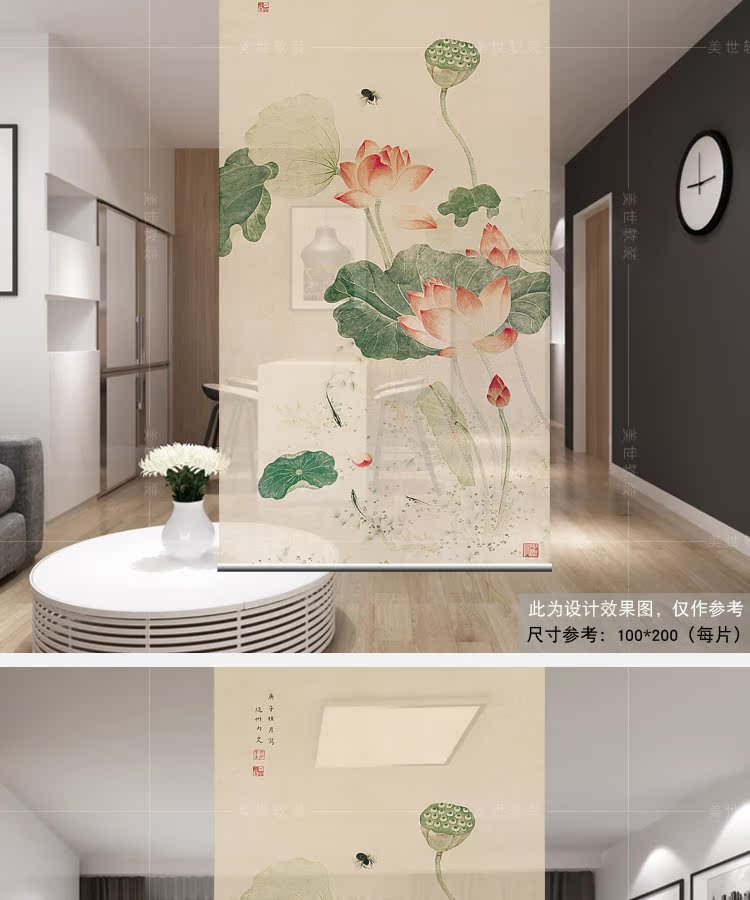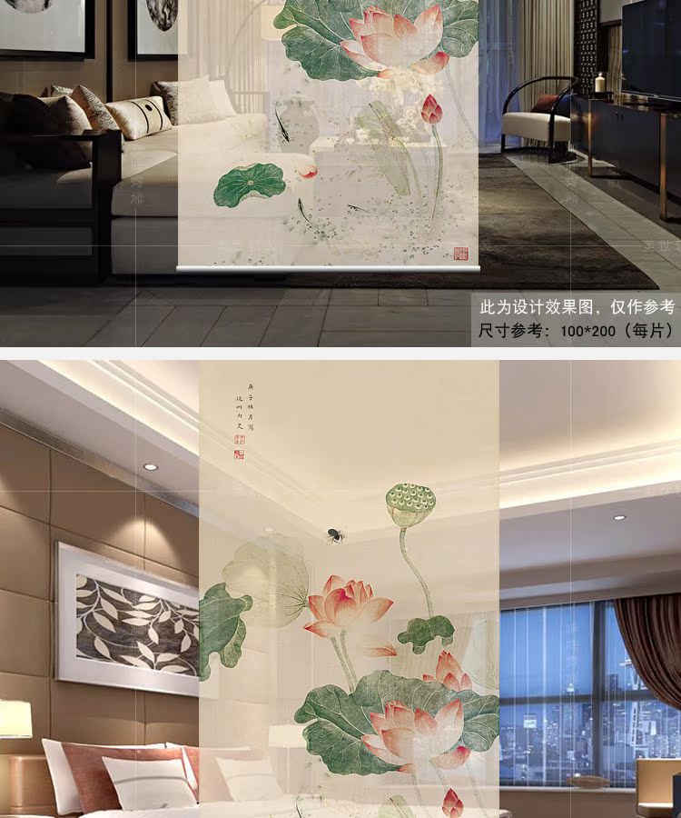 任意尺寸和圖案定制中式掛式屏風隔斷玄關簾軟隔斷時尚客廳玄關掛屏卷簾 吳應貞荷花