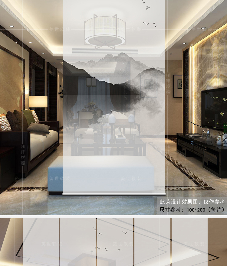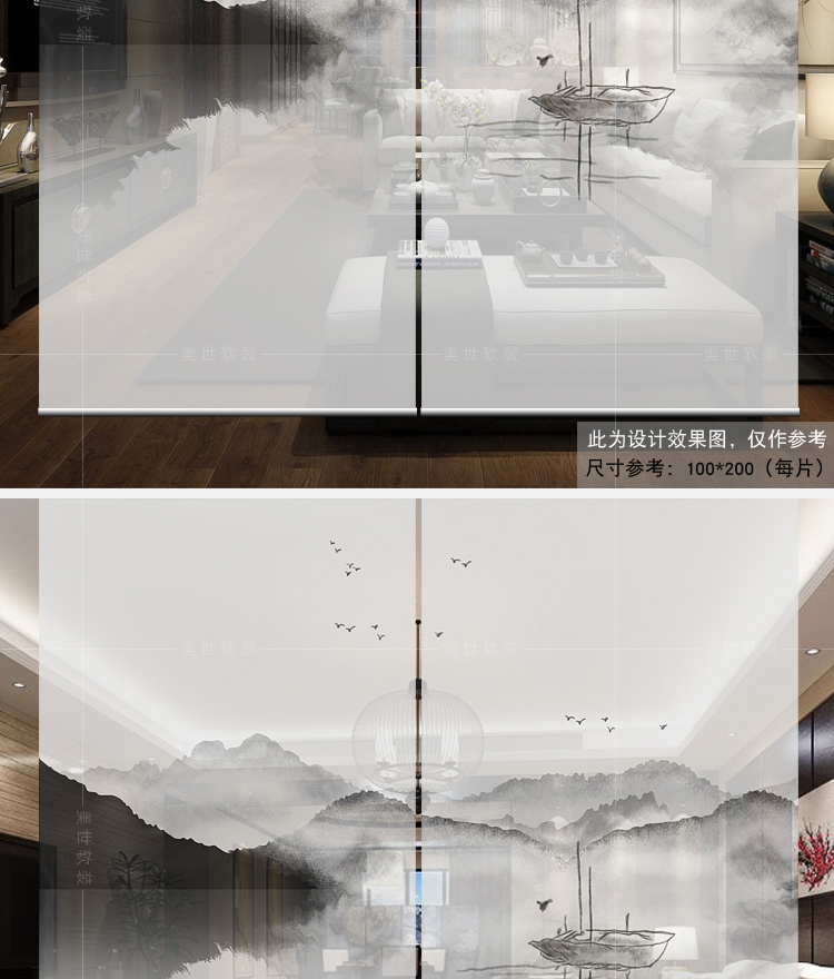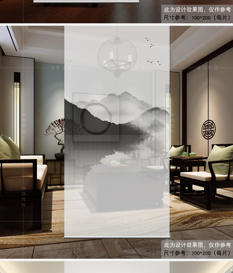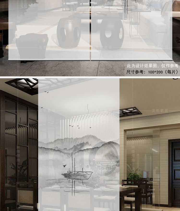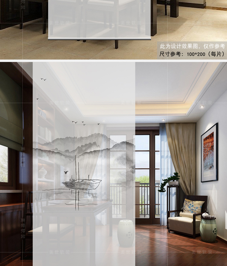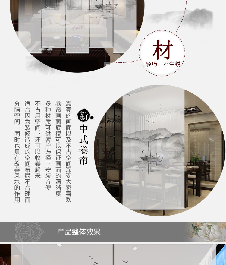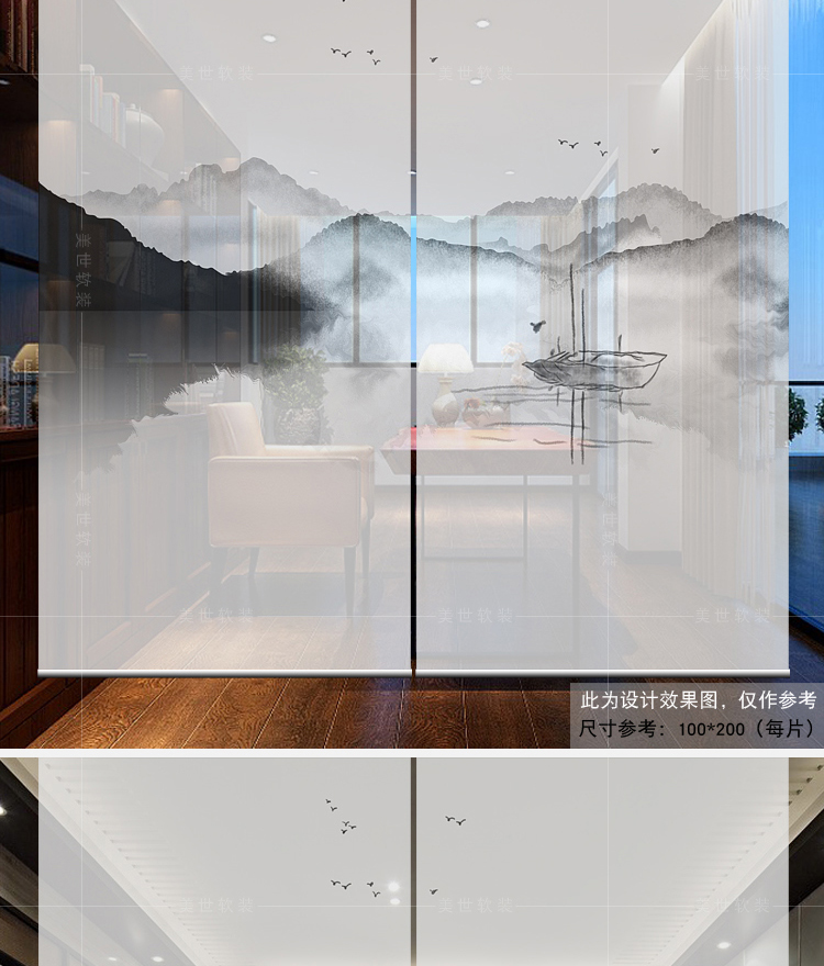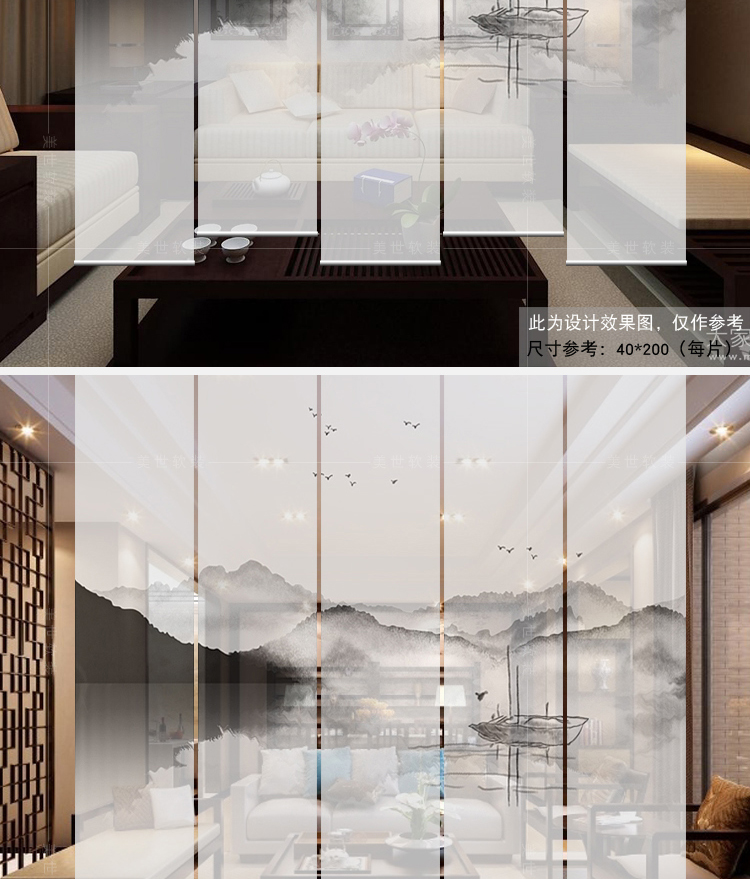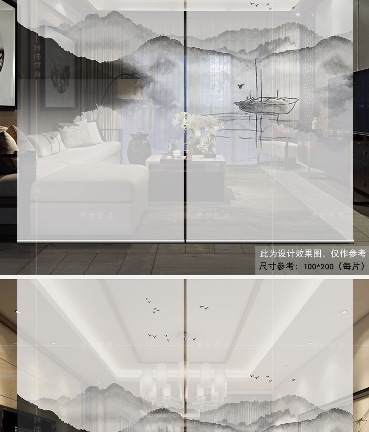 半透圖片效果(單片40*200)新中式掛簾屏風客廳隔斷簾玄關簾軟隔斷時尚辦公室升降窗簾卷簾