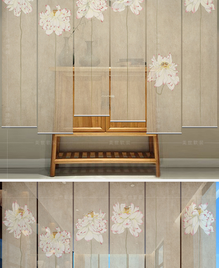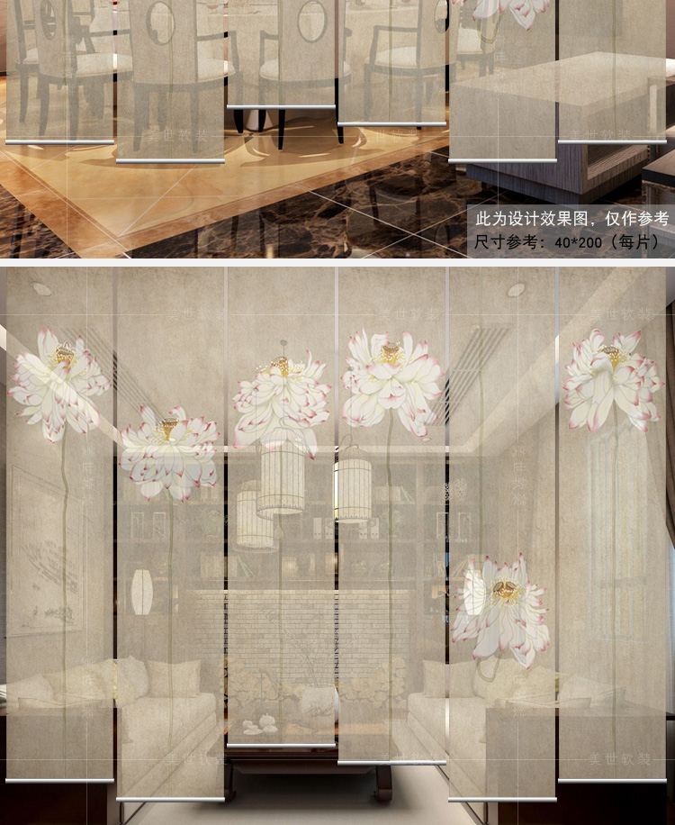 尺寸、圖案定制中式現代掛式屏風隔斷玄關卷簾軟隔斷客廳時尚遮光陽辦公室窗簾