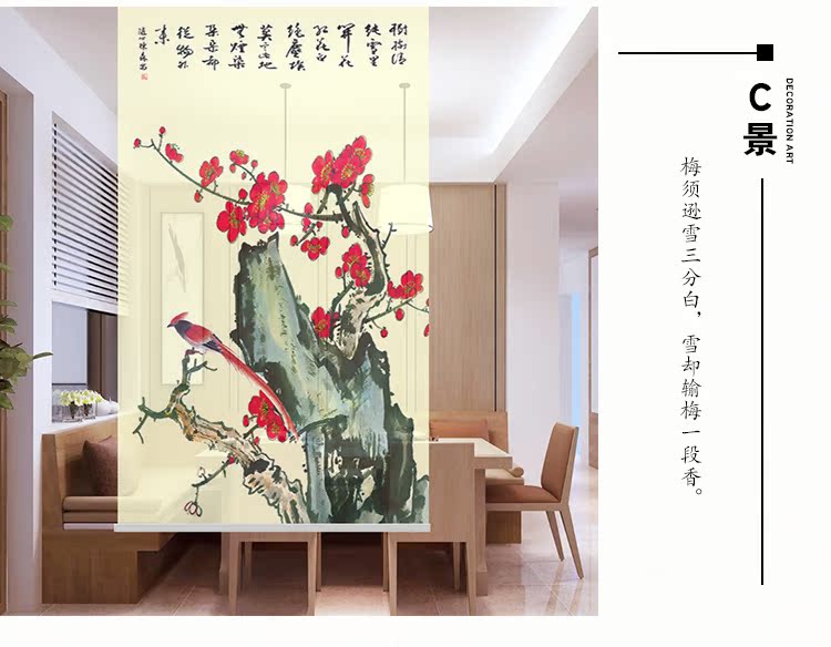 120*200cm每片現代中式門簾掛式玄關簾軟隔斷時尚掛簾客廳玄關掛屏卷簾【梅花】