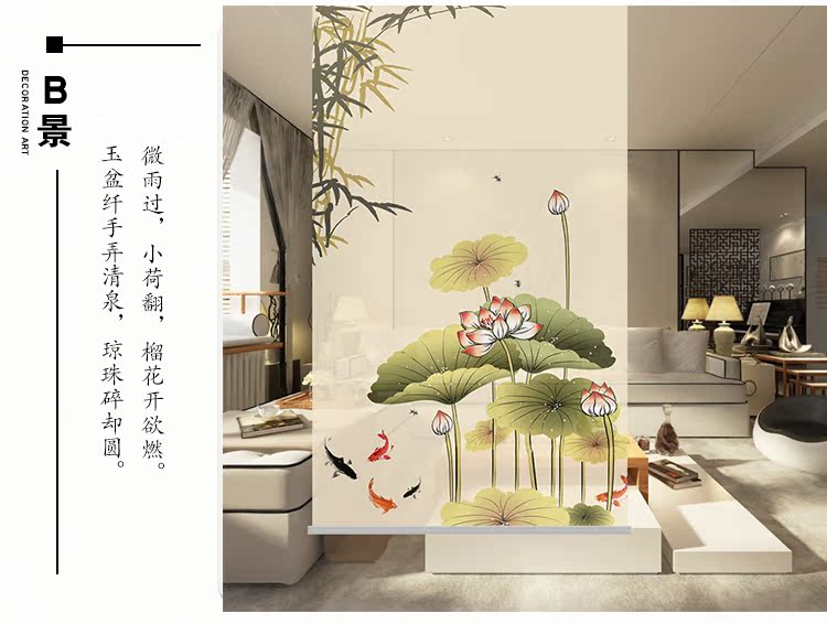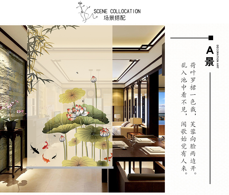 120*200cm每片現代中式門簾卷簾玄關簾軟隔斷時尚客廳玄關掛式屏風掛簾【荷香】