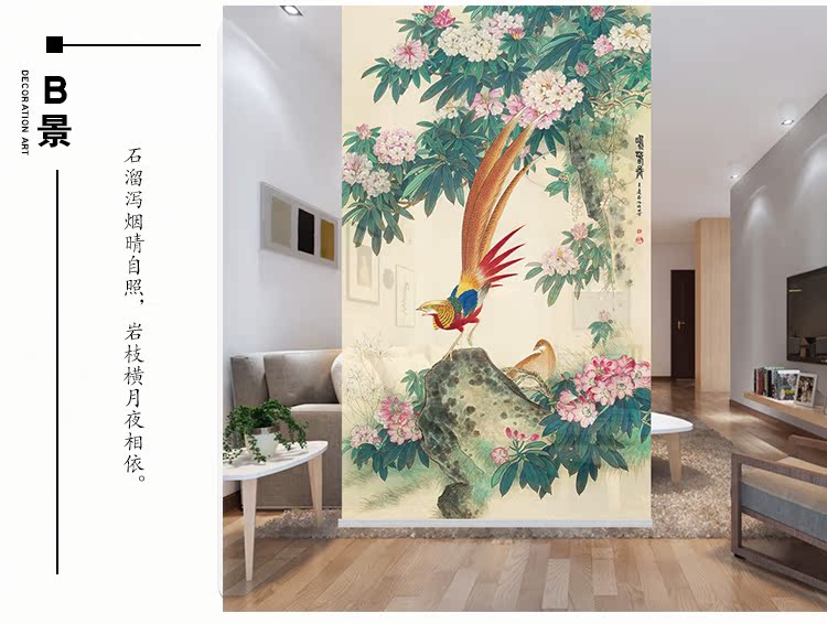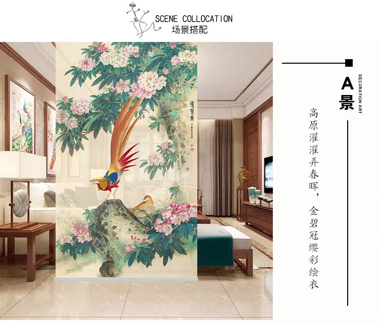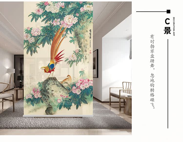 120*200cm每片現代中式卷簾掛簾門簾掛式屏風玄關簾軟隔斷時尚客廳掛屏【錦雞】