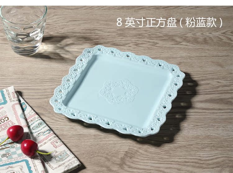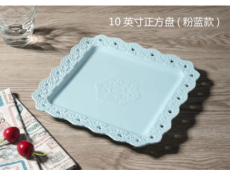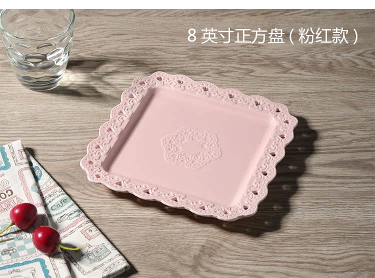 10英寸正方盤(粉紅款)日式點心盤裝菜盤簡約啞光陶瓷盤子壽司盤創意韓式甜點盤