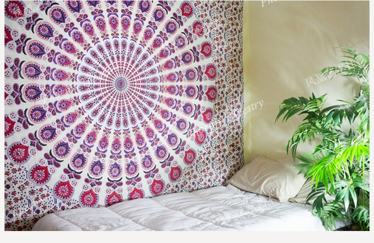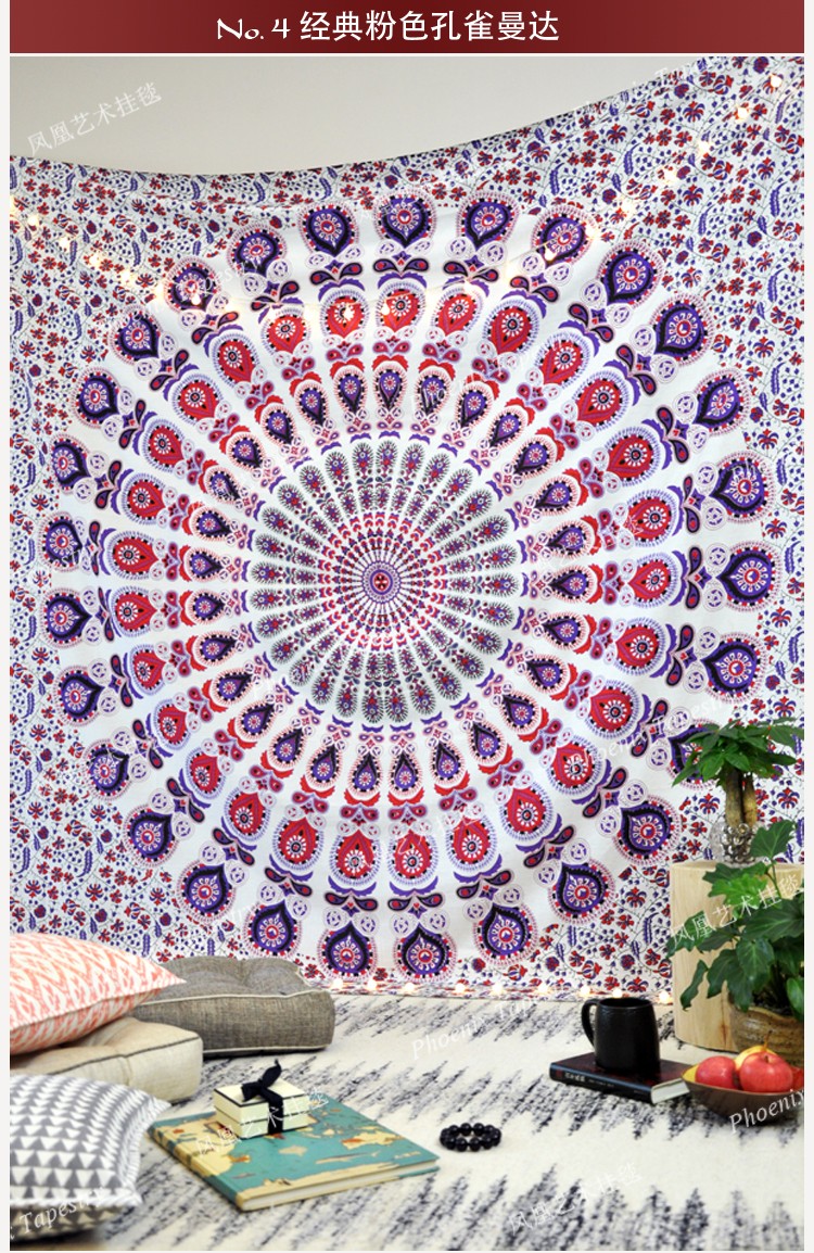 01經典紫色孔雀 小號 140*200cm鳳凰藝術掛毯印度手工印染曼達拉Mandala掛布-經典孔雀系列