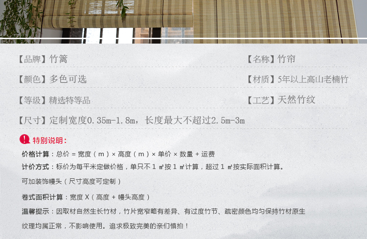 005籬竹竹簾卷簾窗簾飯店隔斷酒店門簾茶樓裝飾商場隔斷拉繩升降窗簾