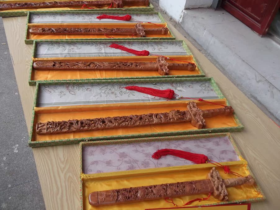 | 本公司大部分商品6一10天到貨。不接急單。急單的客戶請不要下單。感謝諒解與合作! 道教祖廷 鷹潭龍虎山天師府桃木劍 1.桃木劍用開光嗎?桃木劍不用開光,因為桃木劍是道家的一種法器,而開光是佛教的一種禮節,因此不需要用佛教的禮節為道教的法器開光。