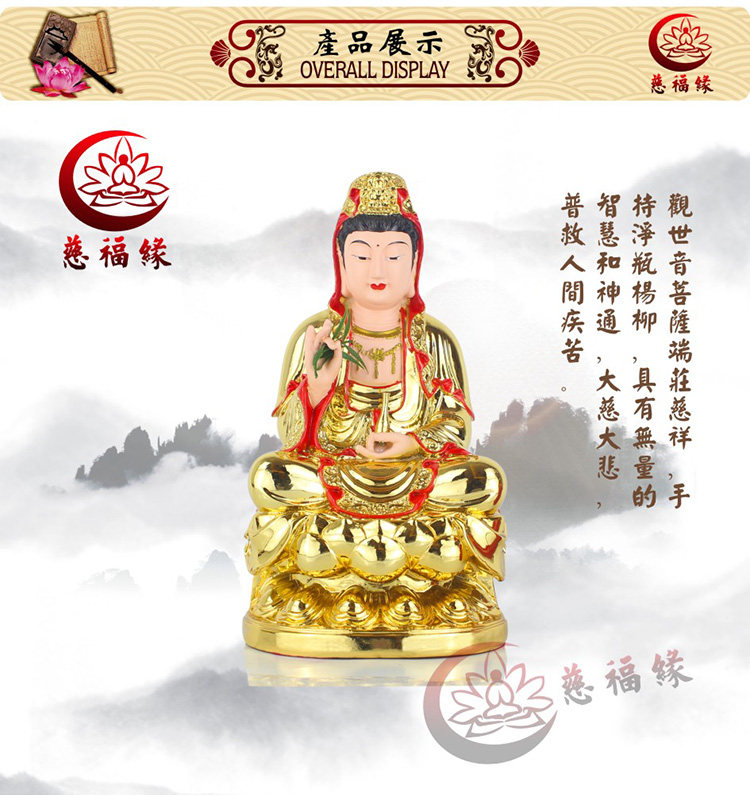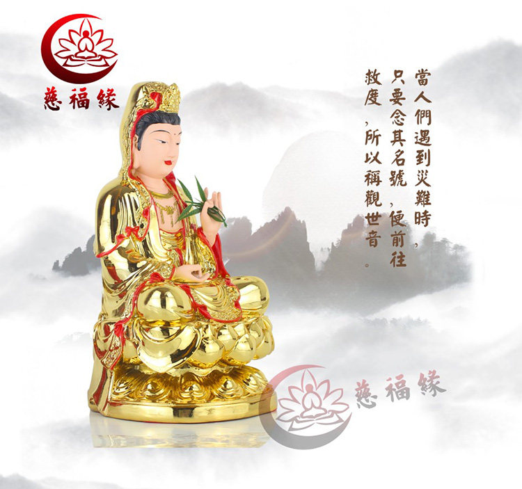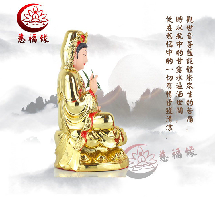 樹脂鍍金蓮花觀音像佛教用具觀世音菩薩南海滴水觀音佛像擺件