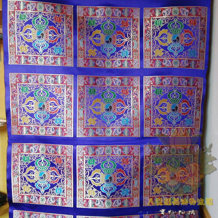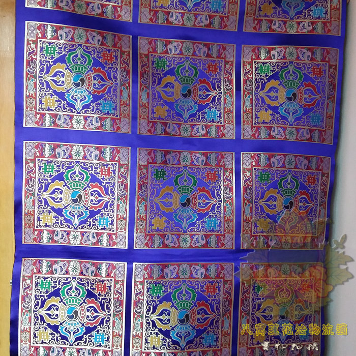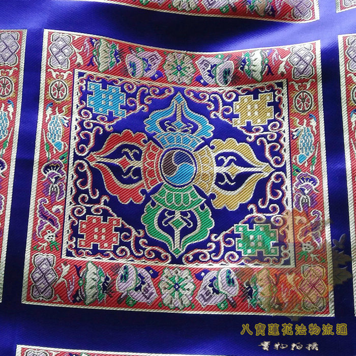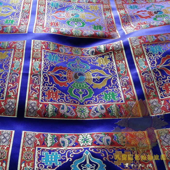 高檔藏式錦緞面料 佛堂裝飾布料 十字金剛杵法器墊面料 寶藍色