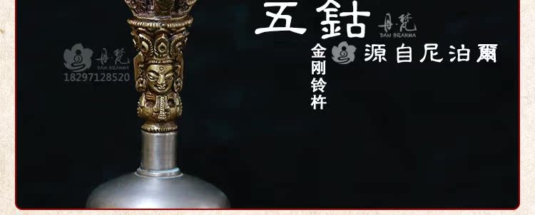金剛鈴杵 尼泊爾五股金剛鈴杵 精品無鈷光面鈴杵 金剛法鈴大號