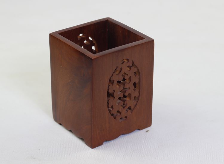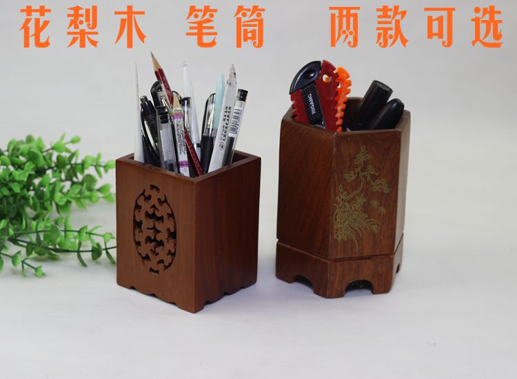 鏤空款紅木花梨木筆筒創意木質文房用品辦公桌精品收納盒擺件紅木工藝品