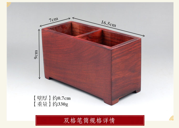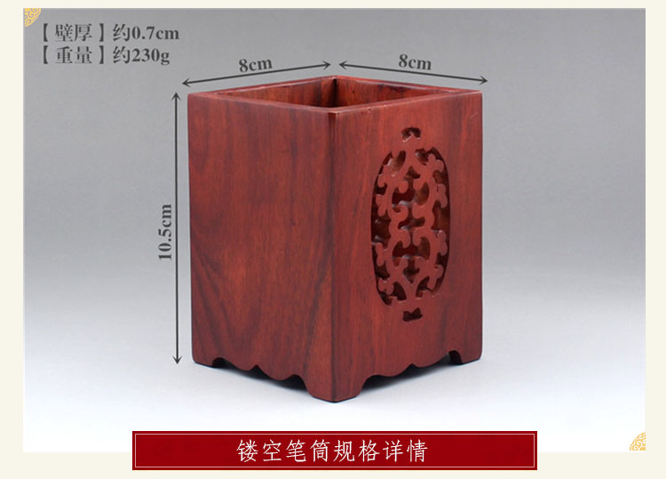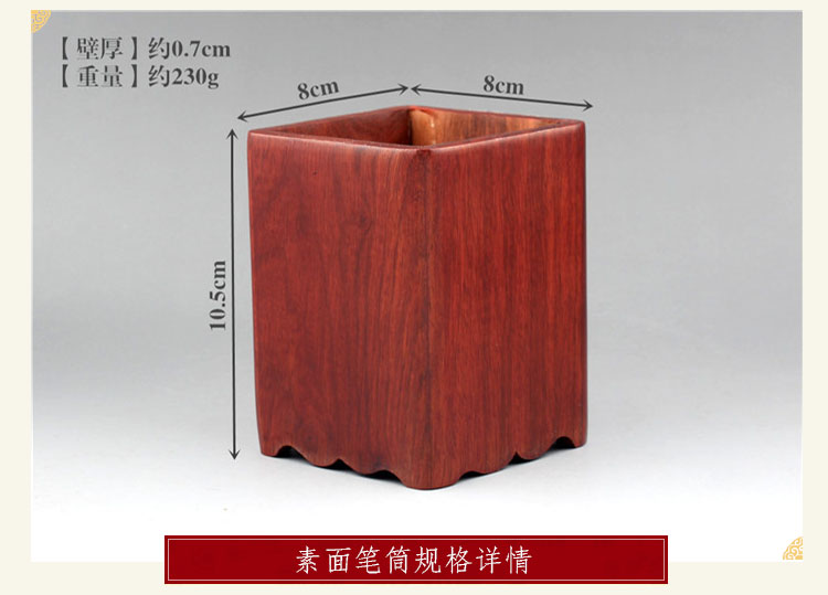 支持雕刻logo,雕刻費4錢每面,5個筆筒起刻需要雕刻的,請聯系客服 【品名】花梨木多功能筆筒【材質】東南亞花梨木【產地】越南【工藝】打磨上漆 【規格】如圖 由于寶貝都是手工制作,每個寶貝的尺寸都會有細微差異由于每塊木頭的密度都各有不同,所以寶貝的重量也都會有略微不同 【產品介紹】由花梨木制作,木紋清晰,手感厚重無論是家里、辦公室、酒店,都顯出木頭特有的內涵與素雅!超大容量,可收納文具、遙控器等桌面雜物寶貝物美價廉,是您辦公桌上不可缺少的高品位筆筒!快快把塑料制品淘汰吧!紅木家居,高貴不貴,源于自然! 【購買須知】 1、筆筒為天然木材制作,而非貼皮的人工合成木,因此每個寶貝花紋的顏色及紋路都各有不同,大自然的產物無法做到一致,隨機發出; 2、木制工藝品都會有細微的瑕疵,做不到百分百完美,完美主義慎重考慮
