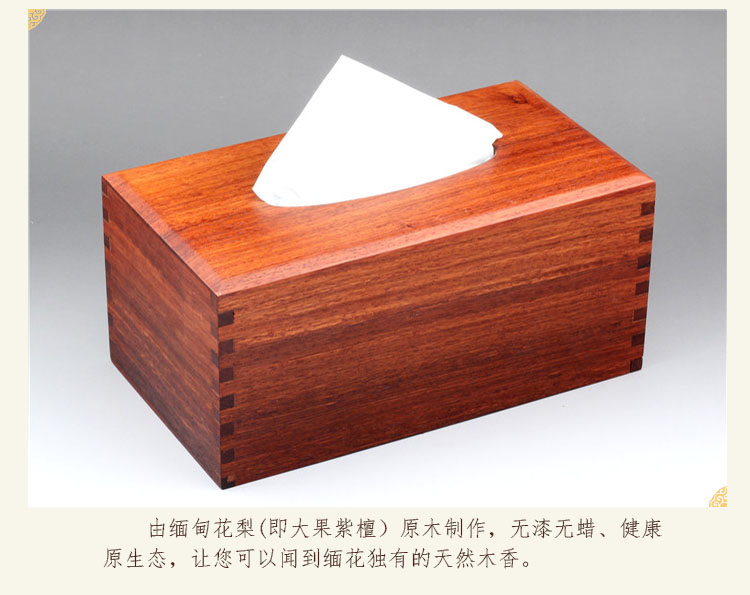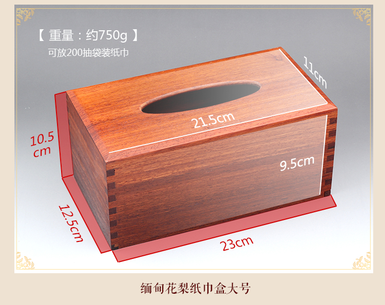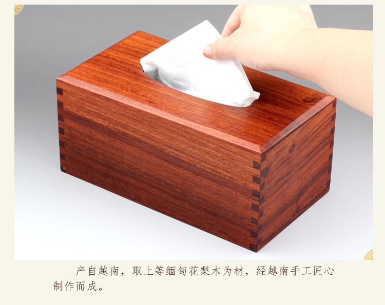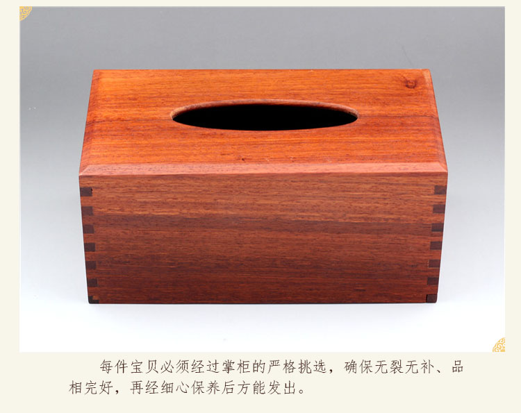 | 本公司大部分商品6一10天到貨不接急單急單的客戶請不要下單感謝諒解與合作! 【品名】緬甸花梨榫卯紙巾盒 【材質】緬甸花梨原木 【產地】越南 【工藝】榫卯 【規格】如圖 備注:由于寶貝都是手工制作,每個寶貝的尺寸都會有細微差異由于每塊木頭的密度都各有不同,所以寶貝的重量也都會有略微不同 【產品介紹】緬甸花梨原木打磨,無漆無蠟,手感厚重每個盒子都有自己漂亮的木紋,天然木香伴您左右榫卯的傳統工藝,讓紙巾盒更加牢固耐用與其他材料制品不同的是,紅木制品經久耐用、不宜折舊,且用的年份越久就越光亮有澤!造型質樸典雅,低調不失內涵,高品位之選 【購買須知】 1、木盒為緬甸花梨原木打磨,因此每個盒子的顏色及紋路都各有不同,大自然的產物無法做到一致; 2、木制工藝品都會有細微的瑕疵,做不到完美,完美主義慎重考慮; 3、木盒是緬甸花梨原木制作而成,無漆無蠟,空氣干燥會導致變形、開裂,北方客戶冬季時期慎重購買哈經常保養可有效預防開裂