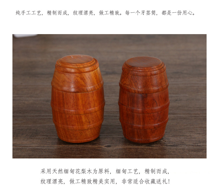 酒桶款亮棕款東南亞牙簽筒天然花梨木牙簽盒實木牙簽罐紅木小擺件手工打磨