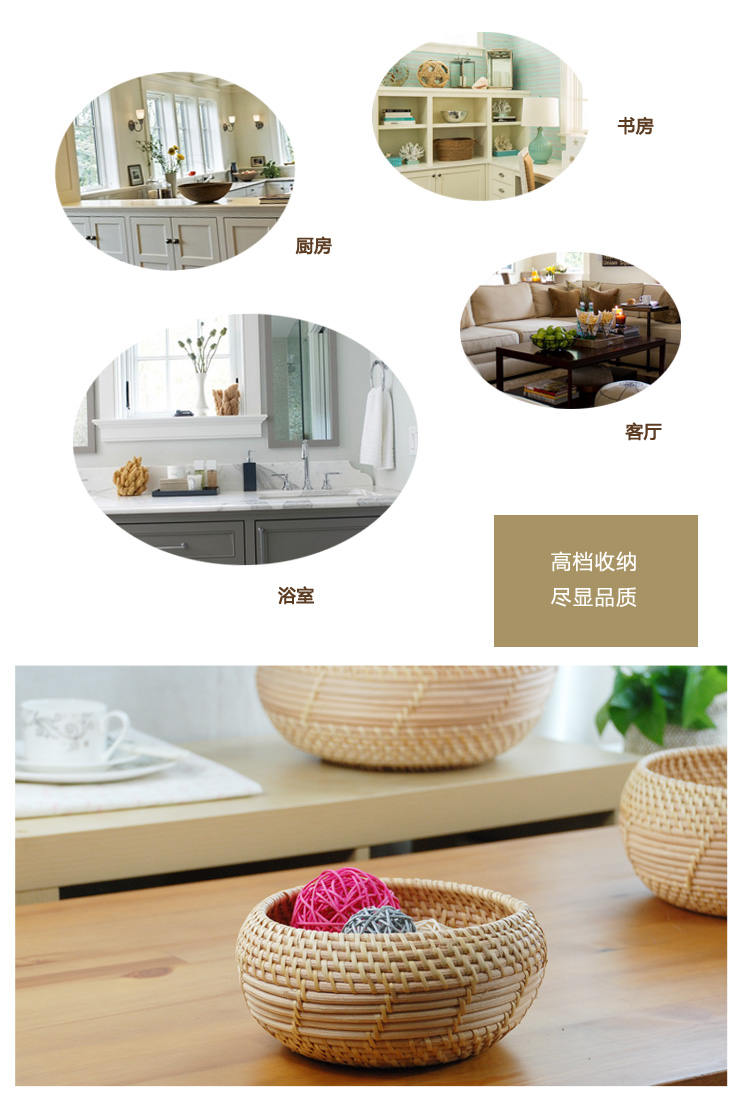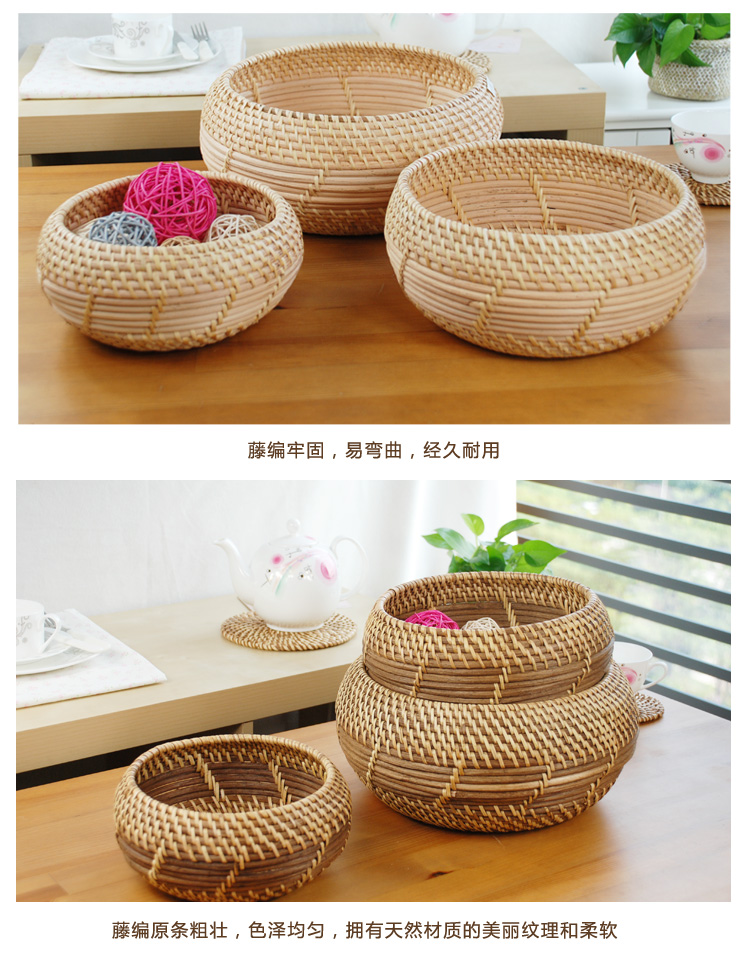 原色大號圓形收納籃子居家桌面零食雜物藤編織筐浴室客廳玄關編制儲物盒
