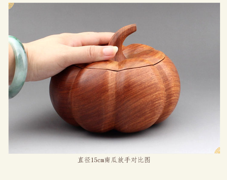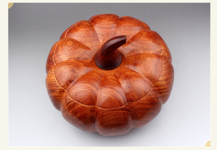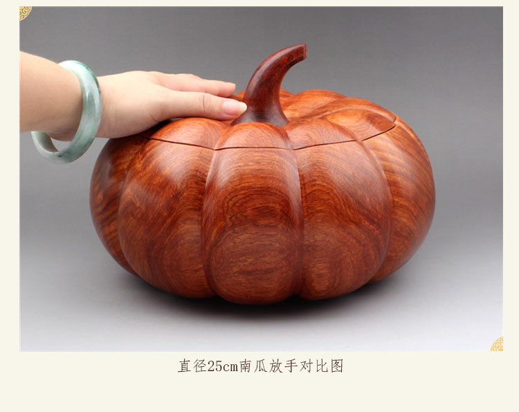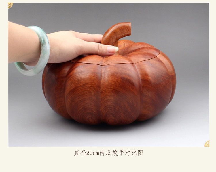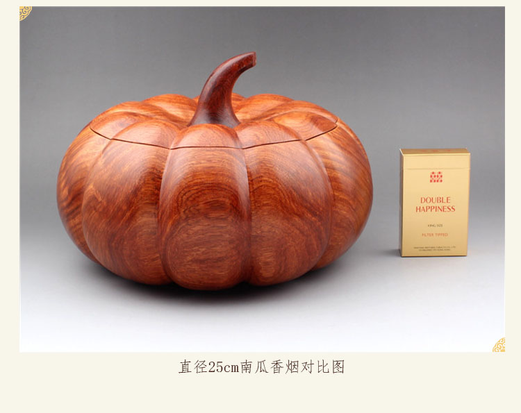 直徑30cm南瓜-預定30天發緬甸花梨木收納盒糖果盒帶蓋煙灰缸南瓜型實木紅木木質工藝品擺件