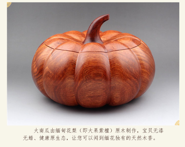 【產品介紹】可愛南瓜型收納罐,小號可做煙灰缸,大號可做收納盒、糖果盒、工藝小擺件!寶貝精選緬甸花梨木、整塊天然實木掏空打磨,無任何拼,呈現的是緬甸花梨美麗的紋路、真實的色彩,并伴有緬花獨有的木香味!寶貝手感厚重,結實耐用不怕燙!!難得一見的好木材,少則幾百、幾千年才能生長成材!