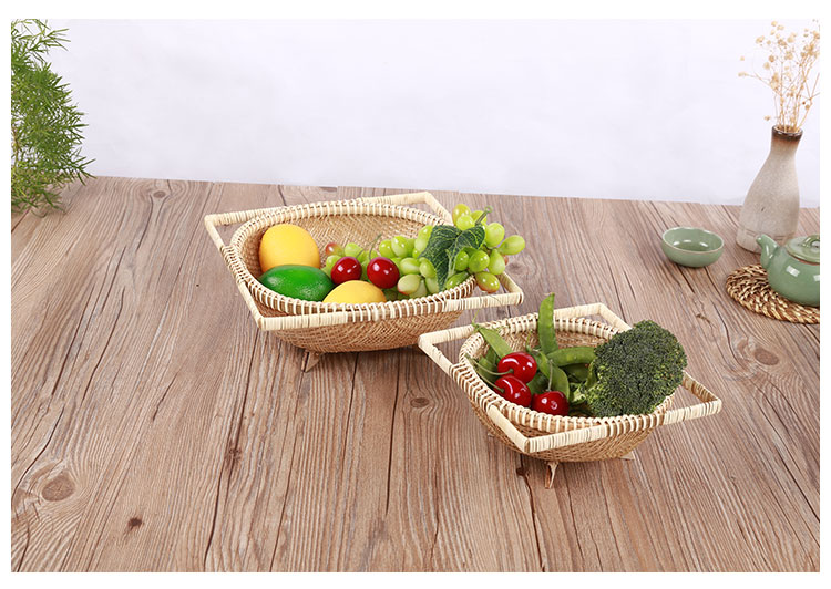 中號 直徑約21cm*高8cm創意果籃編織筐廚房菜籃子分類瀝水籃客廳茶幾零食筐桌面收納盒子