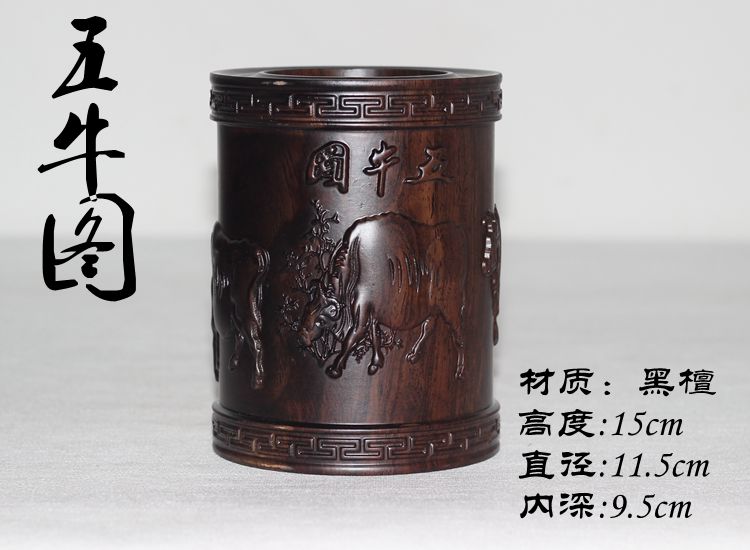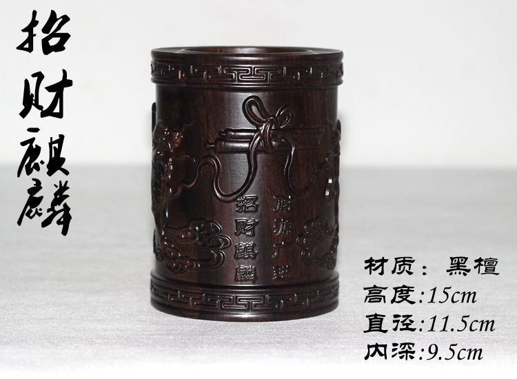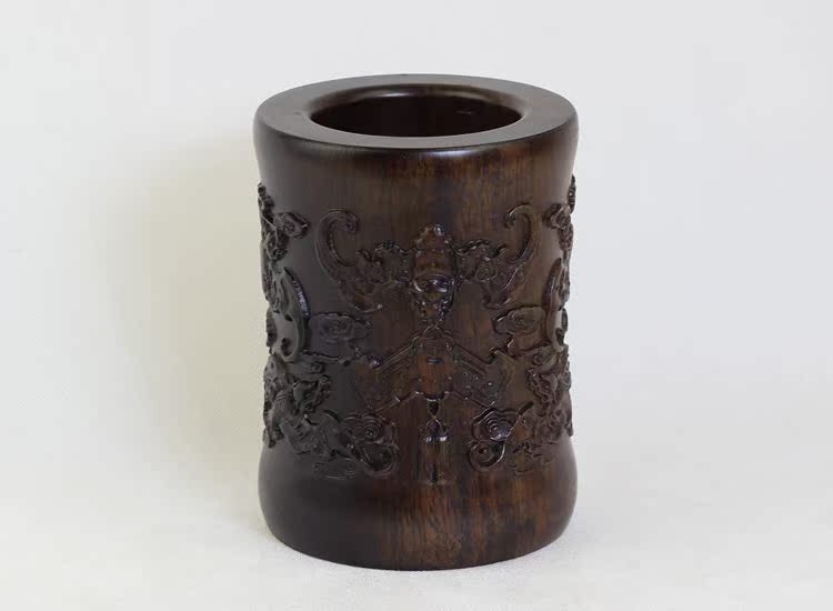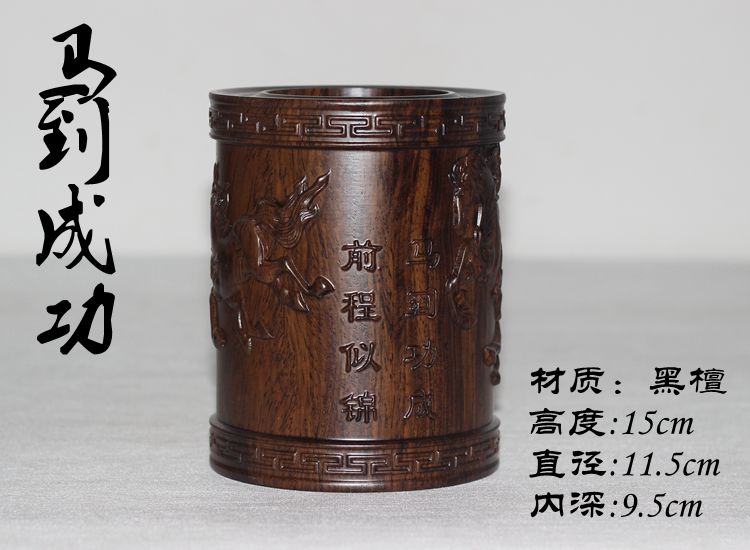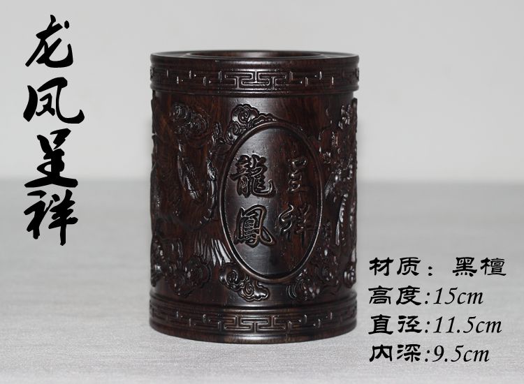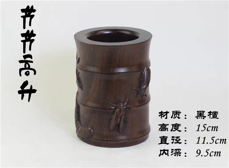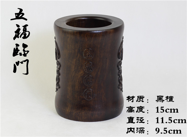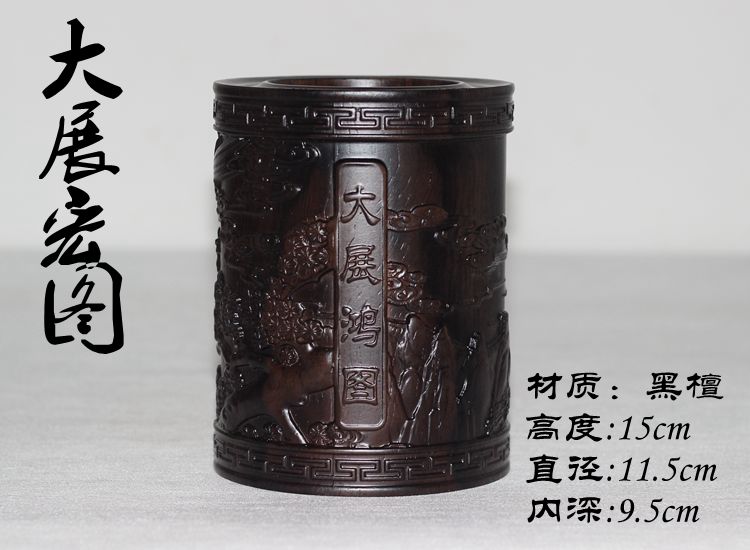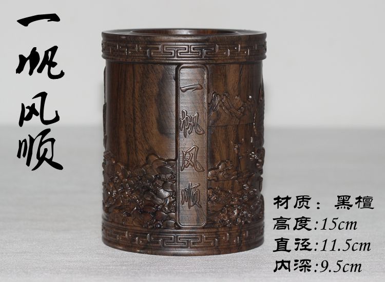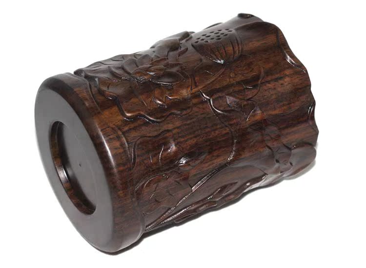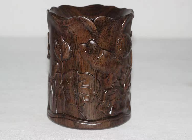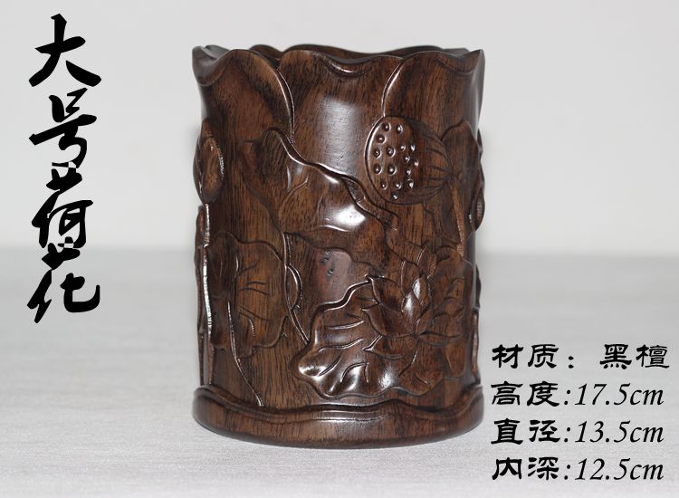 大展宏圖黑檀筆筒仿古紅木筆筒工藝品擺件木雕刻實木黑檀木質荷花筆筒仿古
