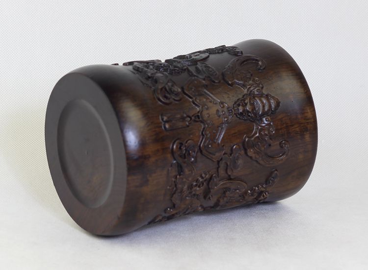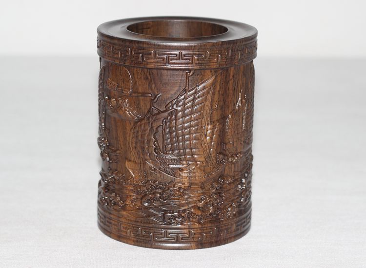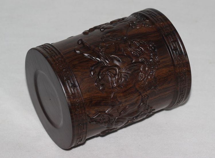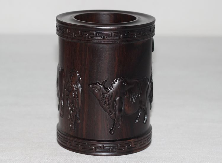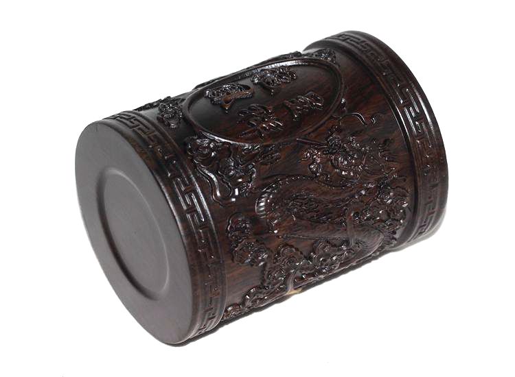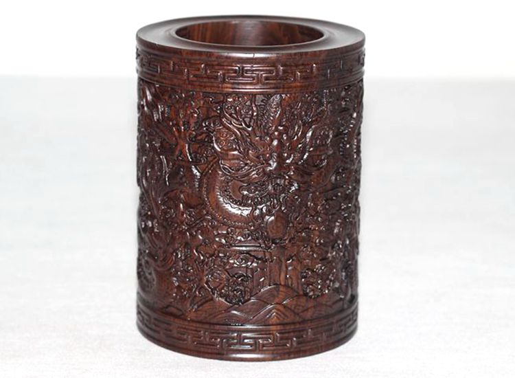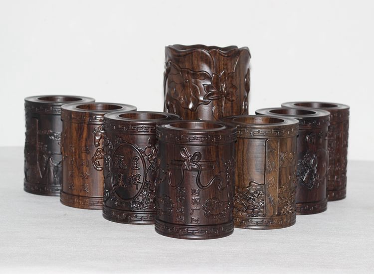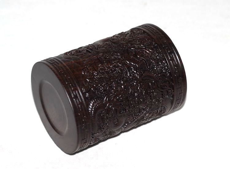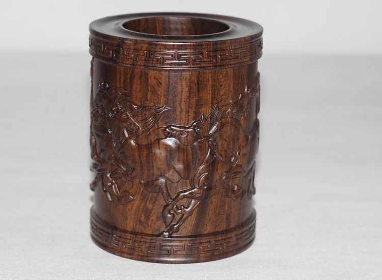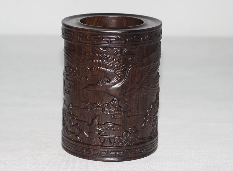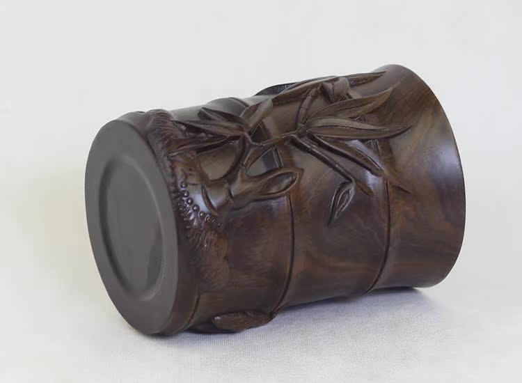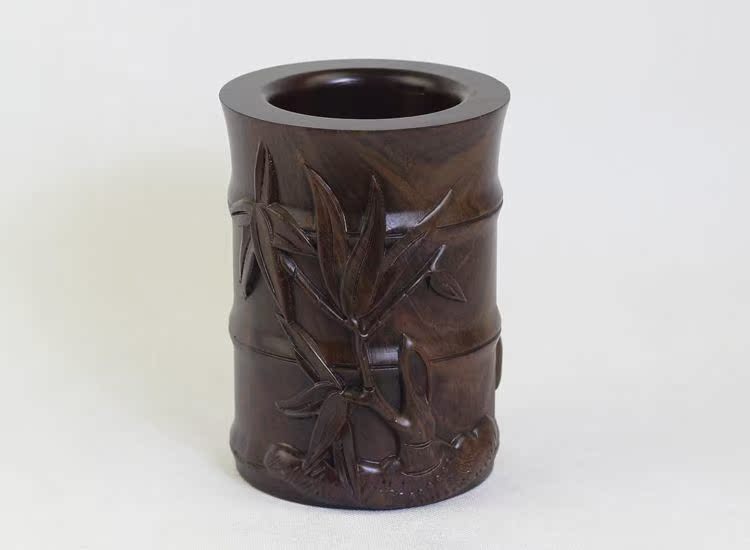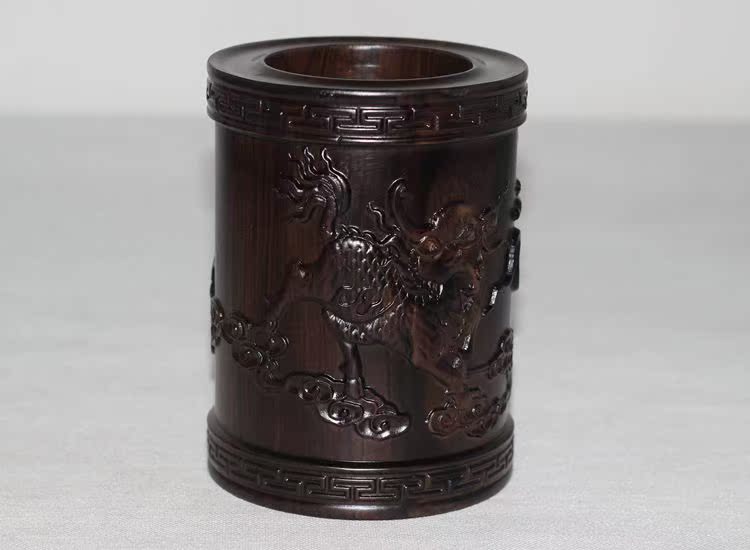 大展宏圖黑檀筆筒仿古紅木筆筒工藝品擺件木雕刻實木黑檀木質荷花筆筒仿古