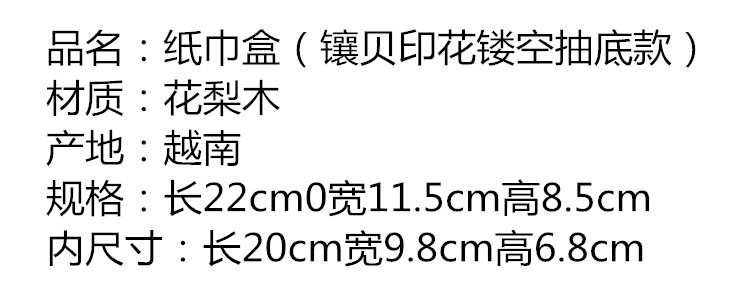 150鏤空貝花抽底款越南紅木紙巾盒創意家用木質客廳抽紙盒歐式花梨實木餐巾紙盒