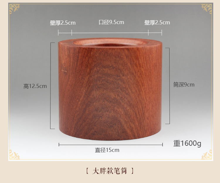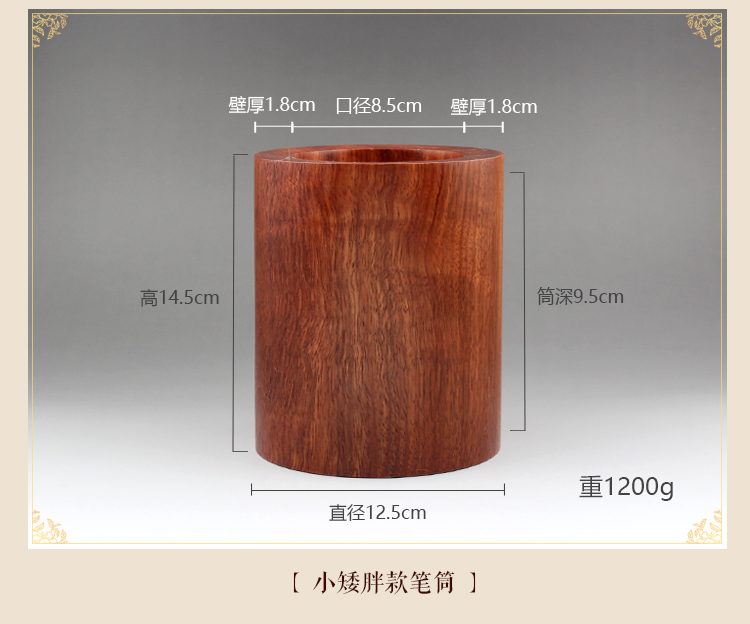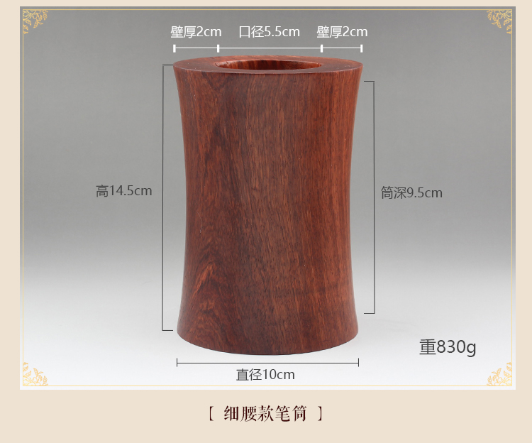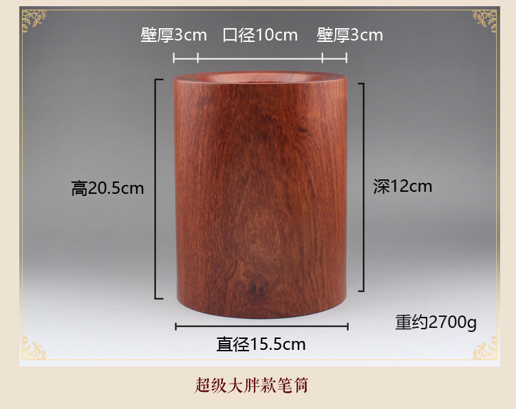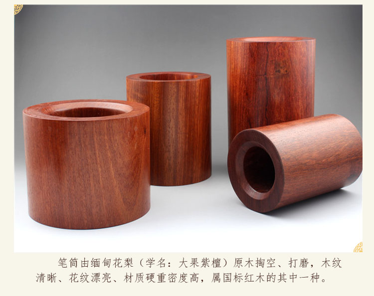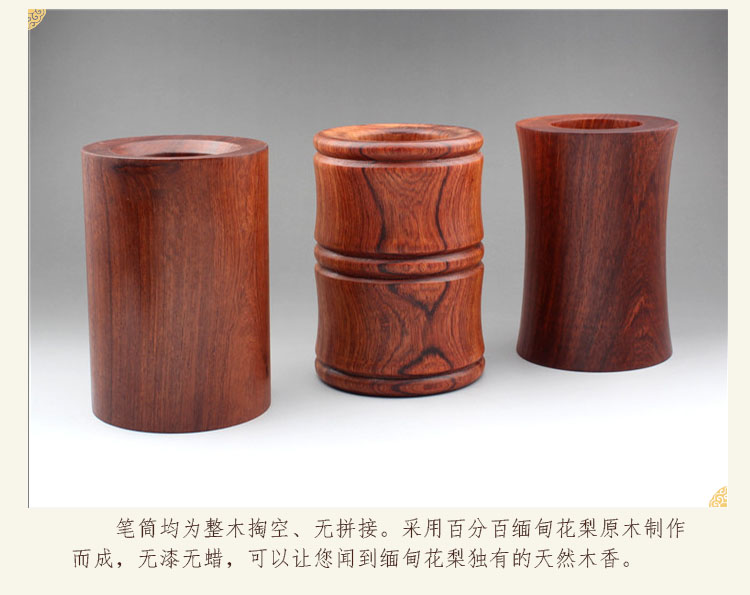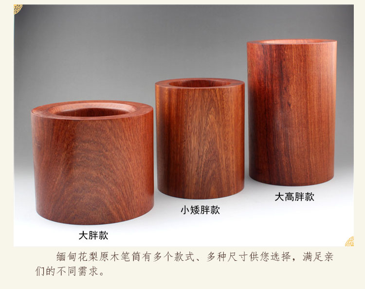 本公司大部分商品6一10天到貨不接急單急單的客戶請不要下單感謝諒解與合作!【品名】緬甸花梨木筆筒【材質】緬甸花梨原木【產地】越南【工藝】機器做丕、手工打磨 【規格】如圖 備注:由于寶貝都是手工制作,每個寶貝的尺寸都會有細微差異由于每塊木頭的密度都各有不同,所以寶貝的重量也都會有略微不同 【產品介紹】強烈推薦!!!百年緬甸花梨原木打磨、整木掏空無拼接!手感厚重,木紋清晰絢爛!此筆筒精美實用、具有收藏價值,是您辦公桌上不可缺少的高品味擺件,同時亦是收藏及貴贈親友之佳品!庫存有限,隨時斷貨哦!在珍貴木材越來越少的今天,在即將漲價的明天,快快下手吧 【購買須知】 1、筆筒為緬甸花梨原木打磨,因此每個寶貝花紋的顏色及紋路都各有不同,大自然的產物無法做到一致,隨機發出; 2、筆筒都是越南手工制作、打磨,所以每個筆筒的尺寸及形狀都會有非常細微的差異,要求一模一樣的請不要購買 3、木制工藝品都會有細微的裂紋及瑕疵,做不到百分百完美寶貝是大自然的產物,沒有經過任何人工處理,完美主義慎重考慮