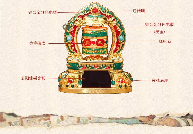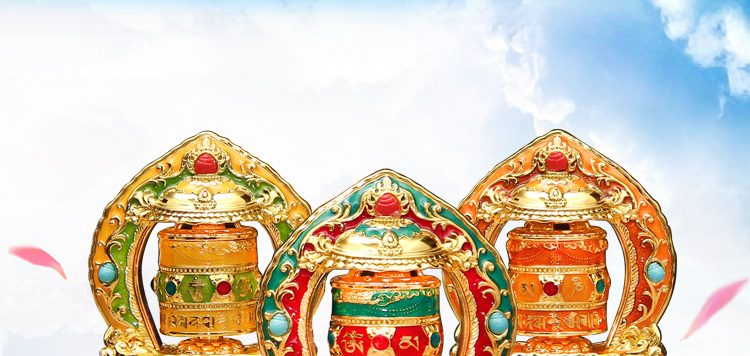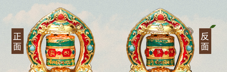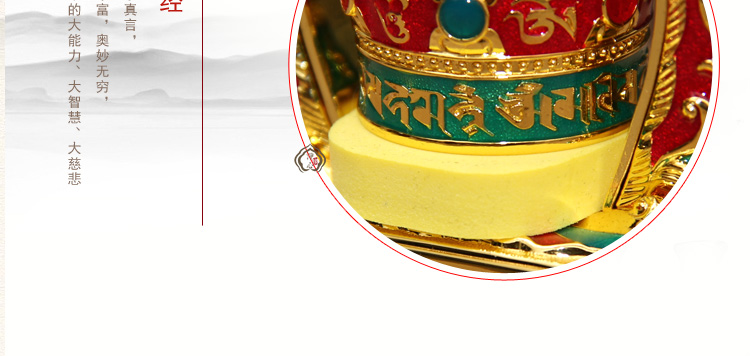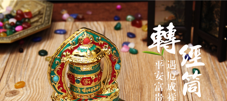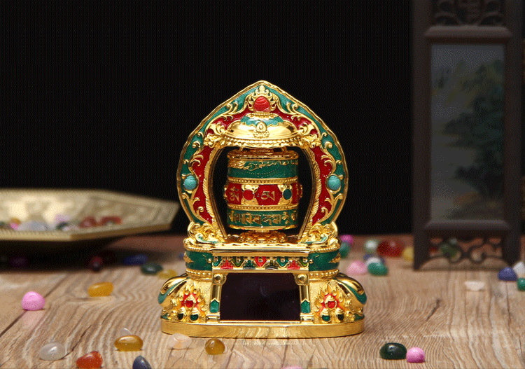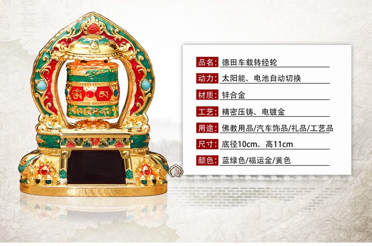 藍綠色德田轉經輪車載擺件第八代合金轉經筒 轉經筒太陽能