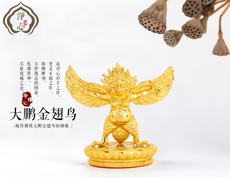 凈心緣佛教全合金金翅大鵬鳥造像大鵬展翅鳥神鳥風水擺件中號