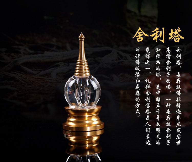 水晶佛塔舍利菩提塔 合金底座 舍利塔 裝甘露丸 供奉擺件