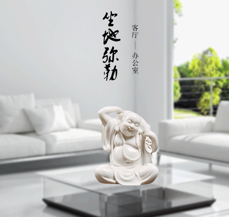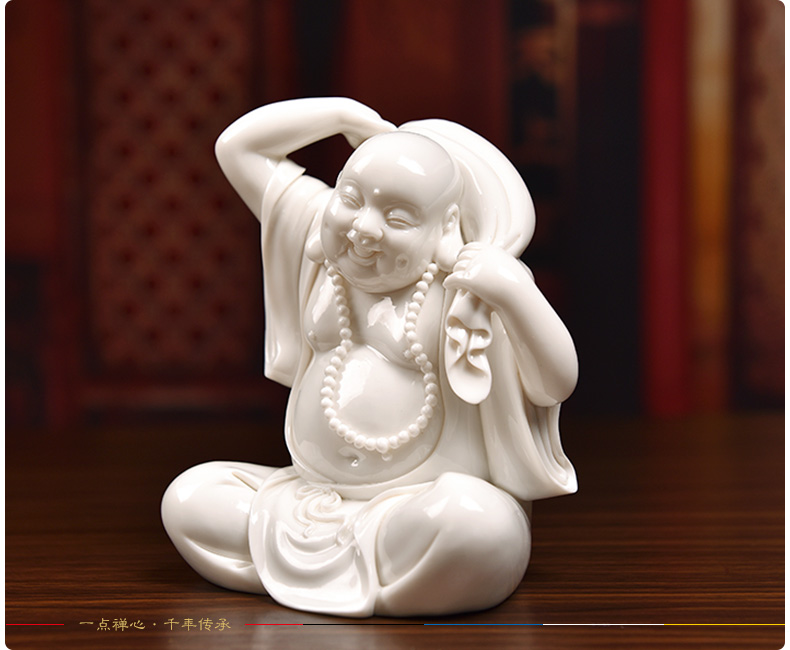 D21-103 坐地彌勒戴玉堂 德化陶瓷彌勒佛像客廳瓷器工藝品招財禮品笑佛擺件D24-103
