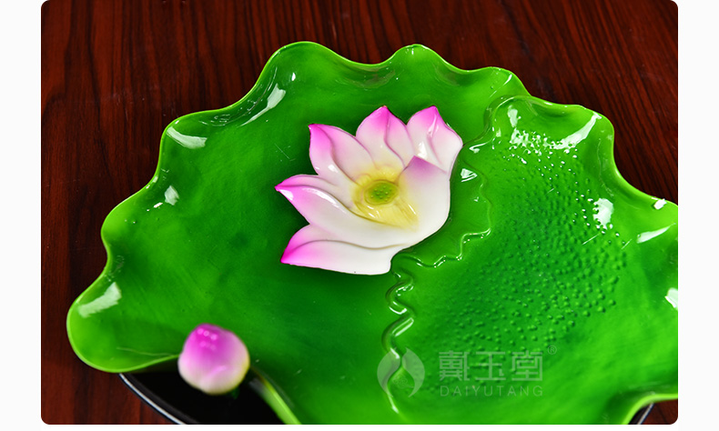 D14-50E E款 10吋荷韻果盤戴玉堂 陶瓷水果盤擺件 佛堂佛具供盤用品/9吋蓮花果盤D14-50