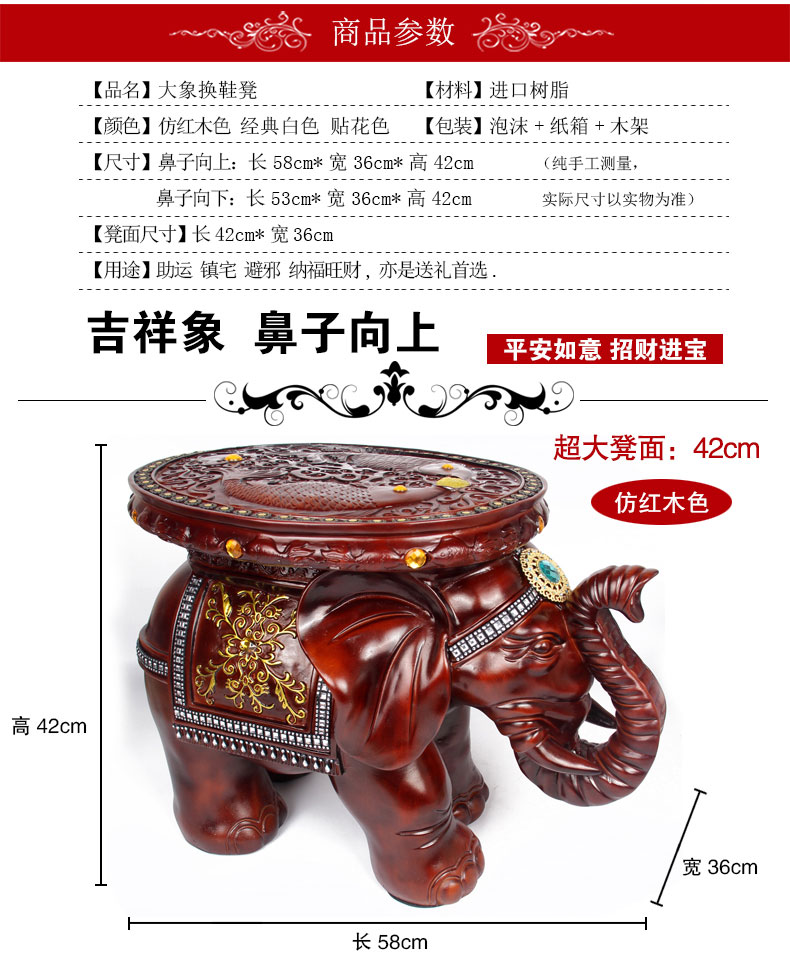 雙魚中號貼花一對歐式大象換鞋凳子招財擺件家居裝飾實用創意結婚禮物喬遷開業禮品