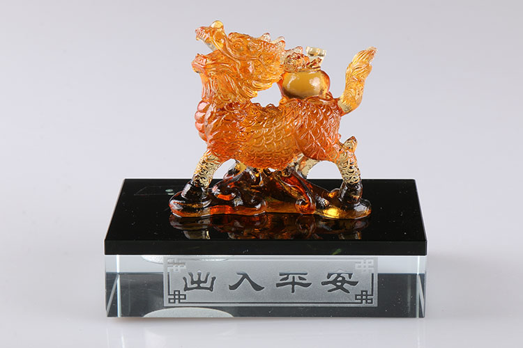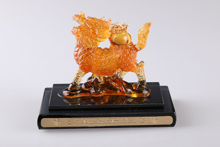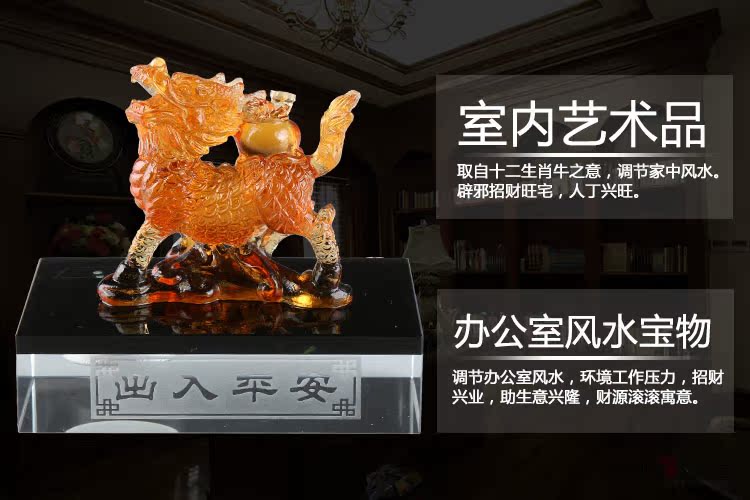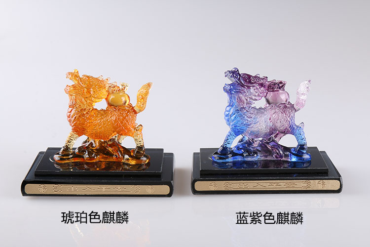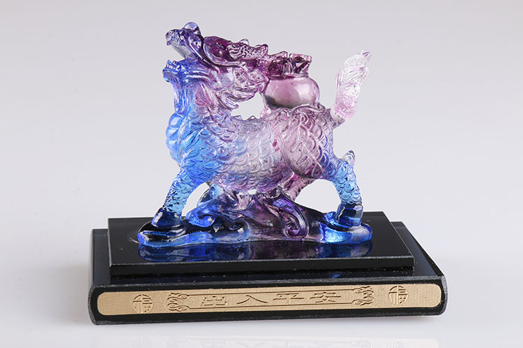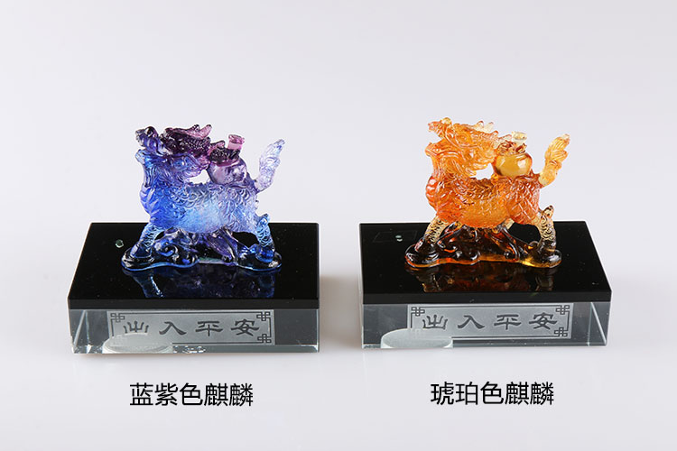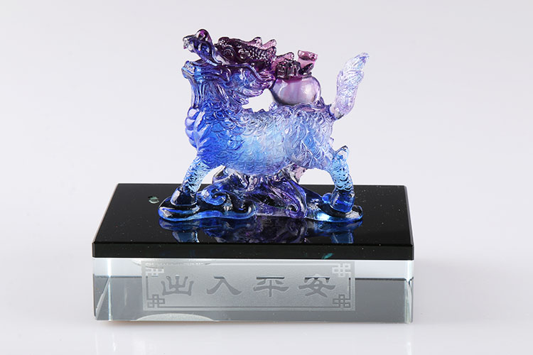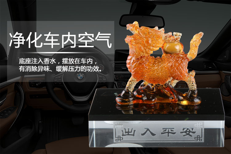 藍紫色+水晶底座新款汽車擺件座式琉璃貔貅麒麟保平安符創意高檔水晶車內飾品